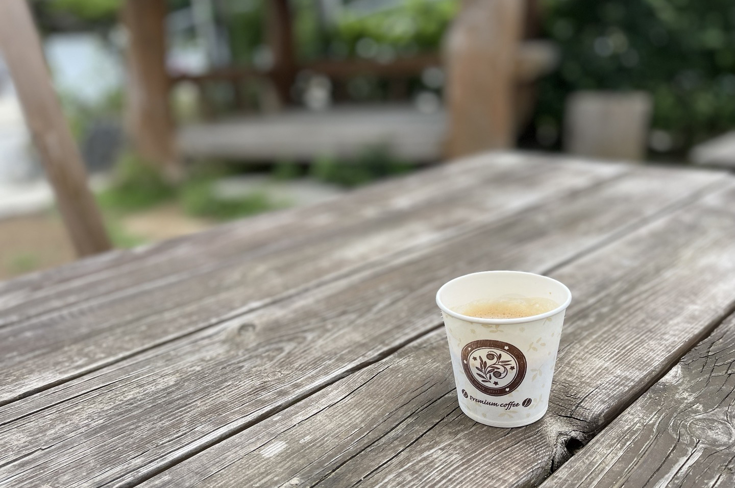 식사를 마치고 야외 테이블에 앉아 커피 한 잔.