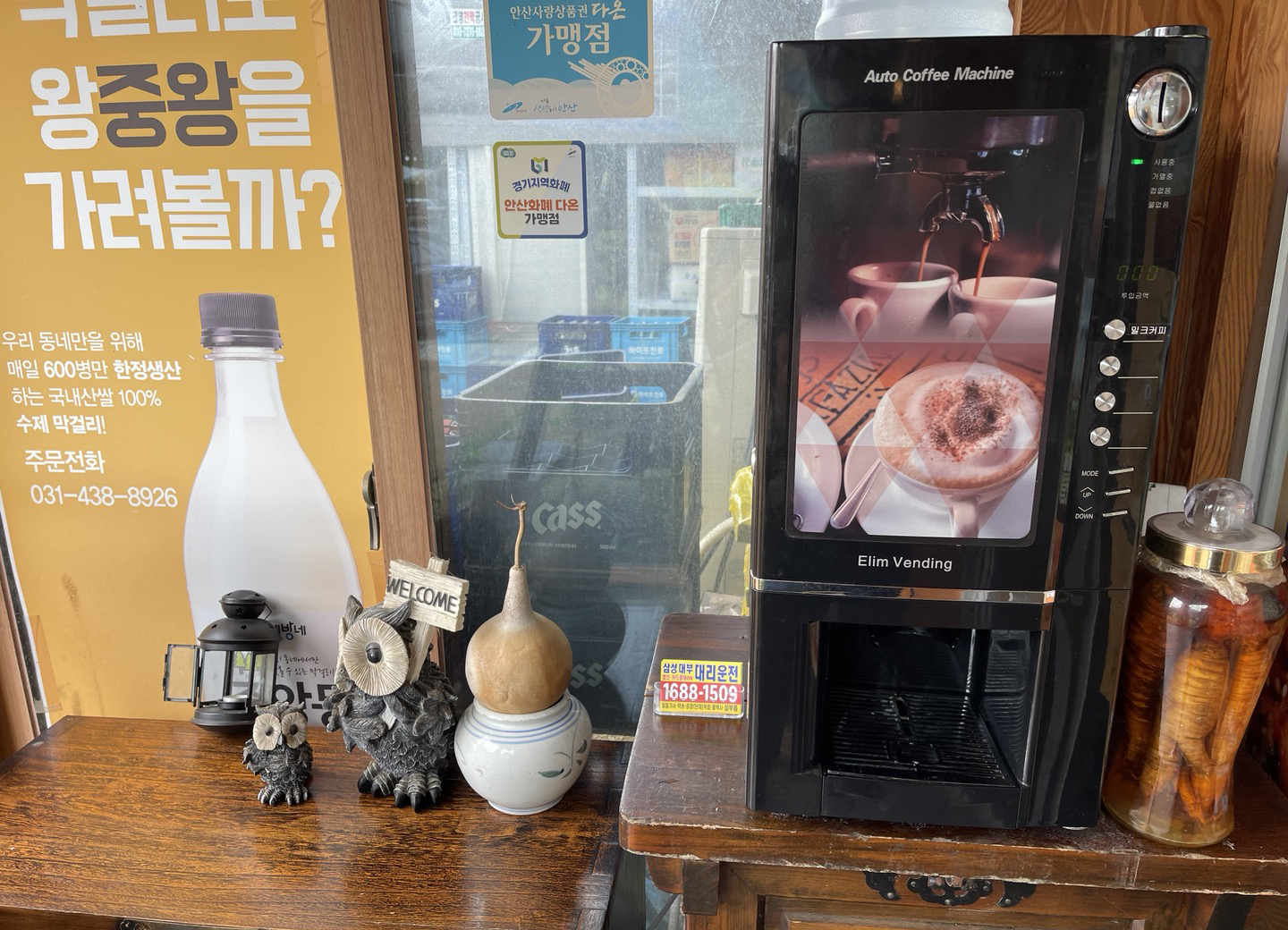 매장 입구쪽에 웨이팅 등록기계와 커피자판기가 있습니다.