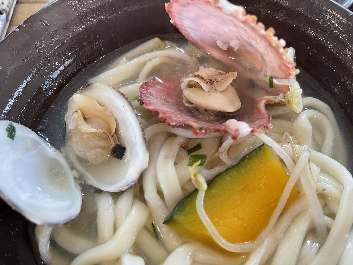 보들보들 칼국수와 땡글쫄깃해 보이는 조개들. 단호박도 들어있네요.