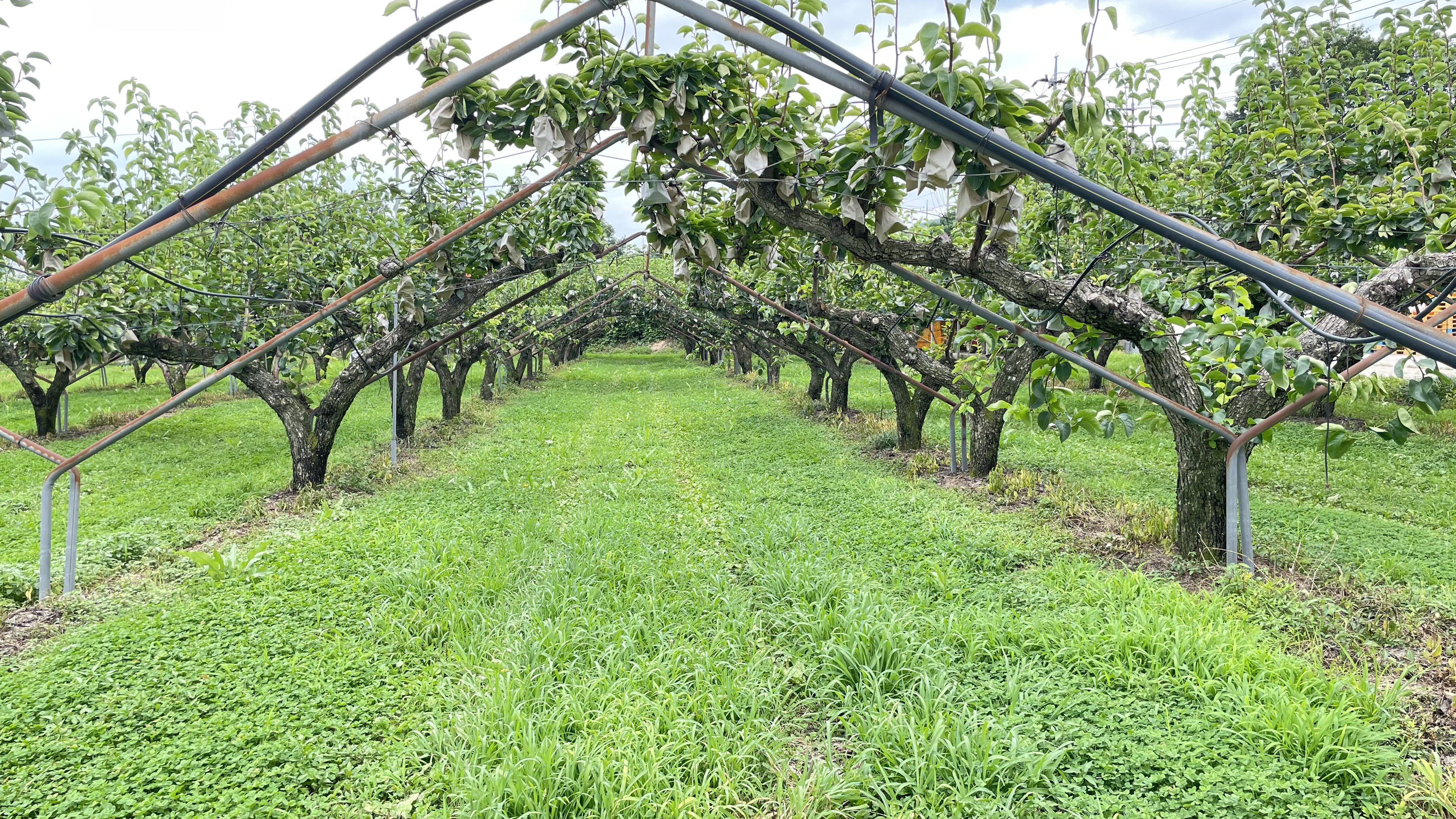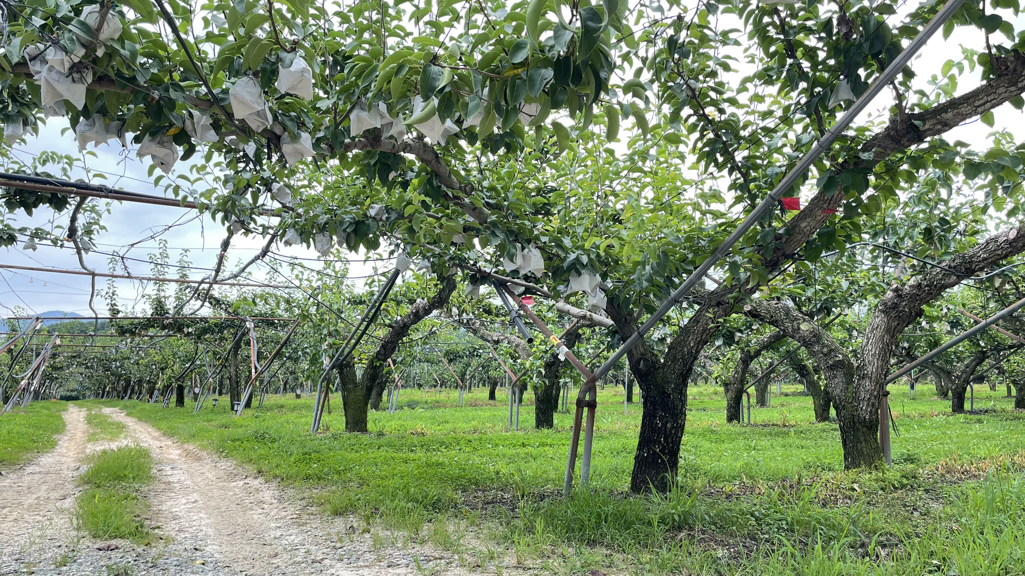 봉투에 쌓인 배가 주렁주렁 매달려 있네요. 과실나무만 보면 너무 신기해요~^^