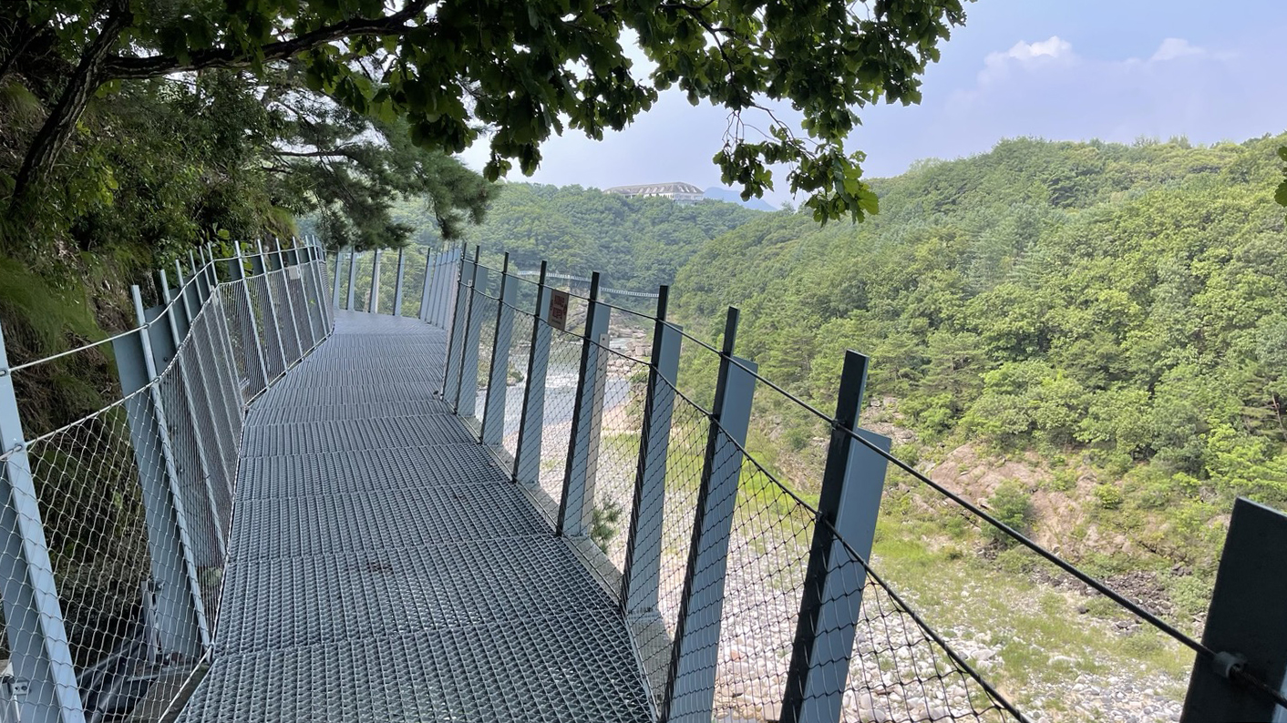 절벽을 따라 놓인 철제 잔도길은 아래가 훤히 보여 좀 무섭기도 해요. 하지만 안전하게 설계되어 있어, 사진 찍으며 천천히 걸어도 부담 없어요.