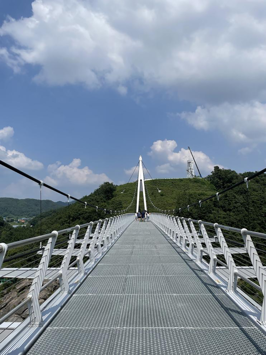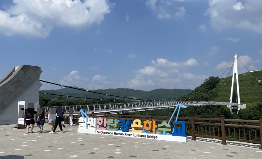 철원 한탄강에 위치한 은하수교는 '한탄강'+'철원'+별빛 은하수를 형상화한 이름으로, 길이 180m, 폭 3m, 높이 50m의 비대칭 현수교입니다. 최대 통행 가능 인원은 2,300명이며, 2020년 9월에 개통되었습니다.