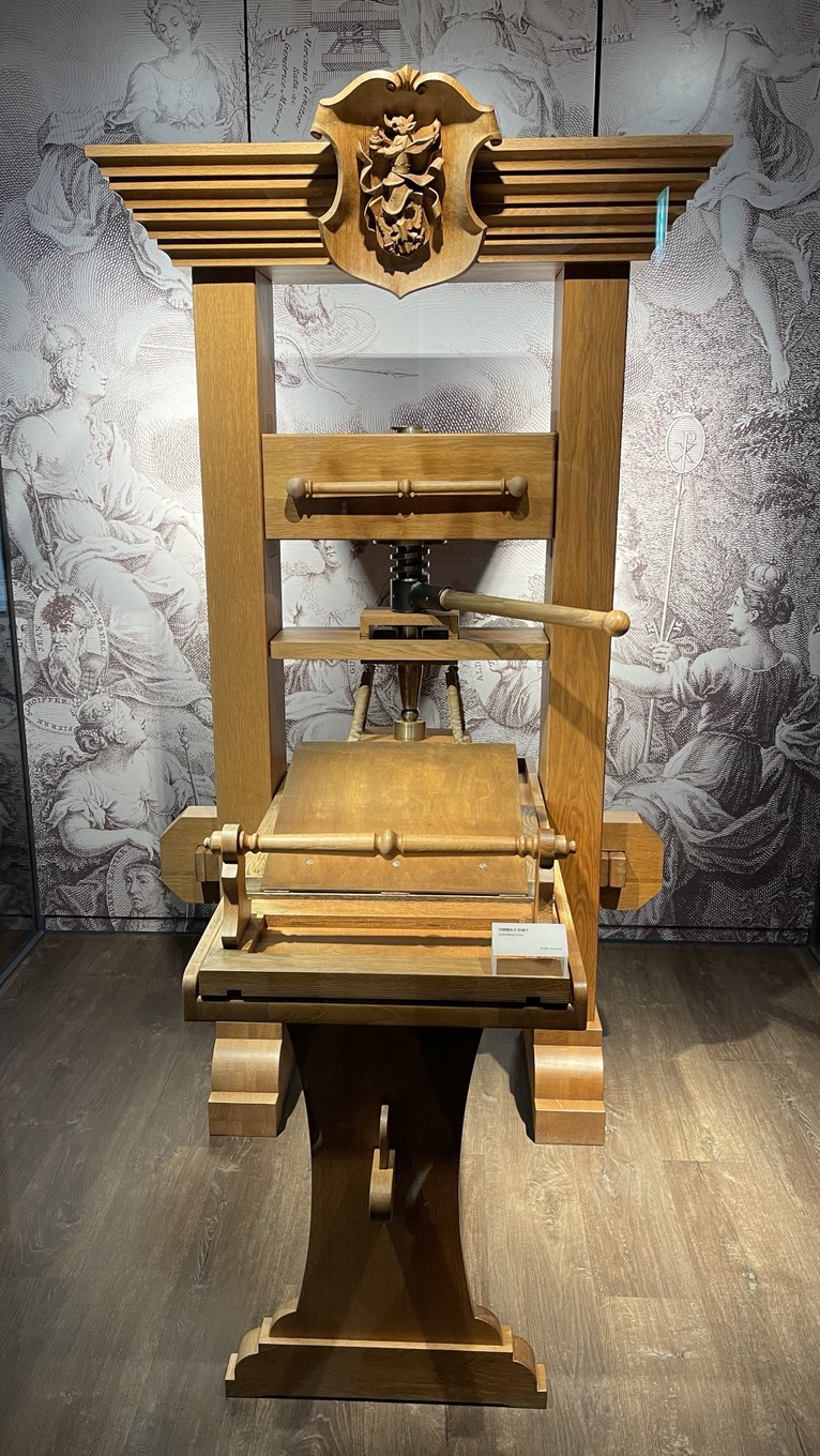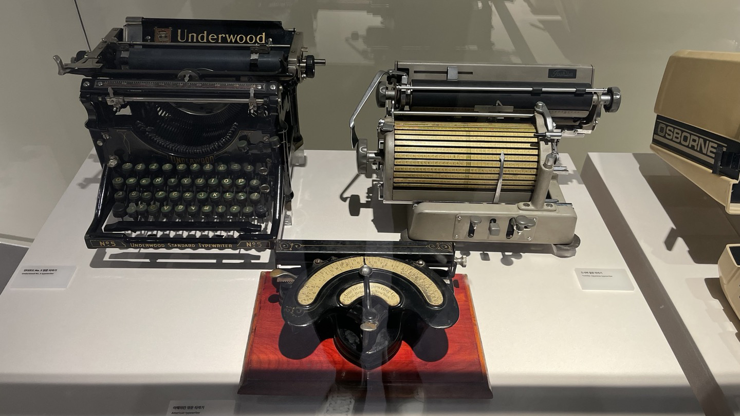 쿠텐베르크 인쇄기, 월인천강지곡 금속활자, 다양한 형태의 타자기와 필기구들이 전시되어 있습니다.
