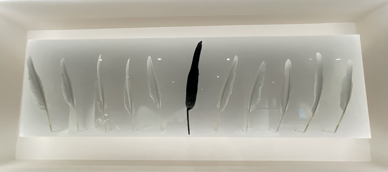 지하로 내려가는 계단 공간에, 지하~1층 높이의 전시물이 먼저 눈에 들어옵니다.