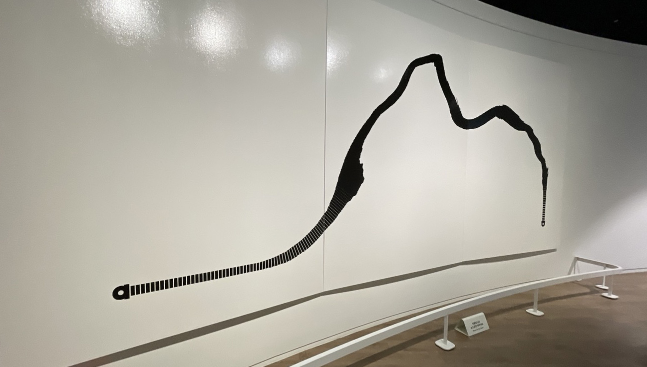 지하로 내려가는 계단 공간에, 지하~1층 높이의 전시물이 먼저 눈에 들어옵니다.