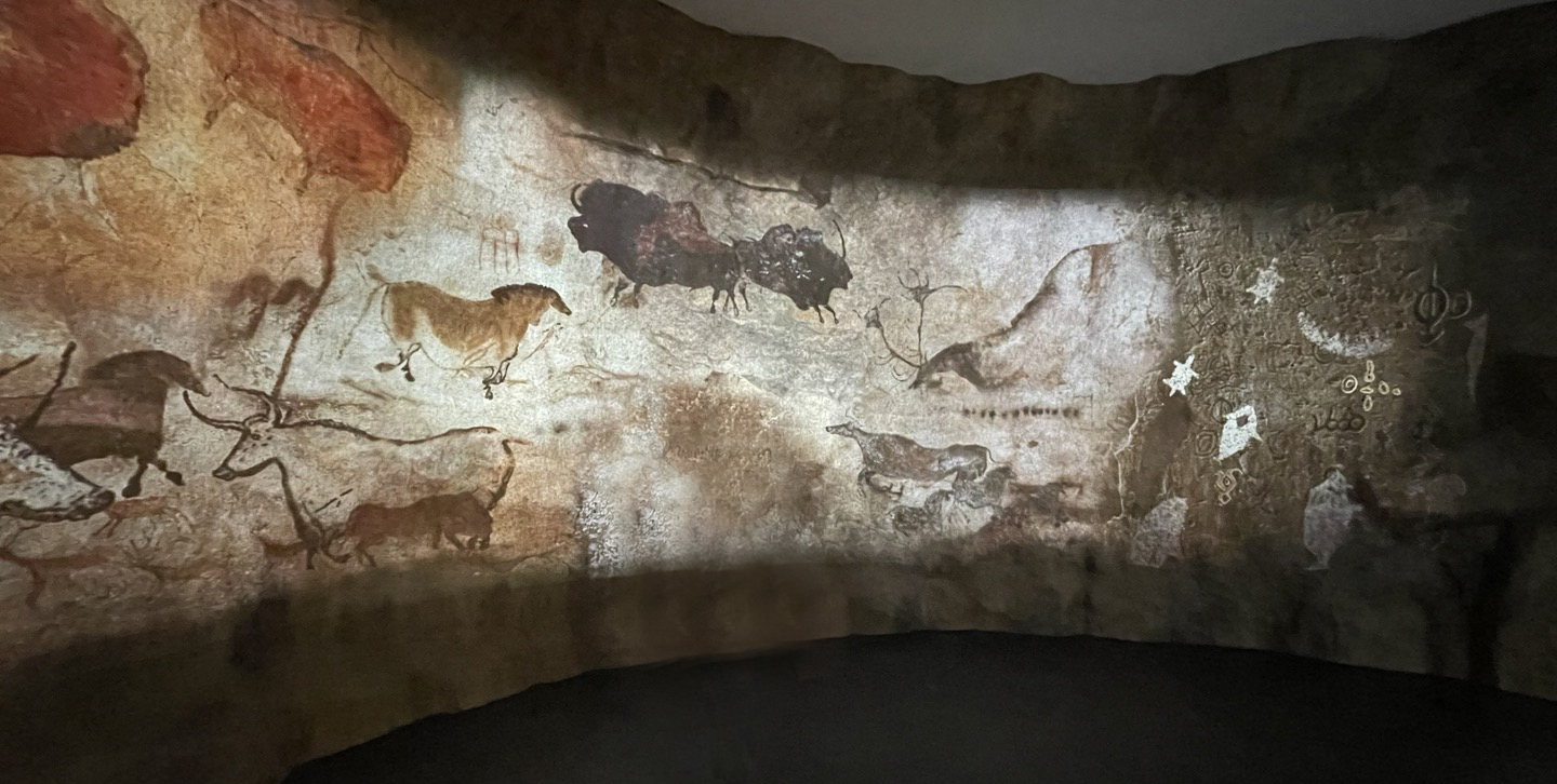 벽면에 영상을 쏘아 동굴벽화를 재현해 놓았습니다. 그림은 인류 최초의 문자라고 할 수 있겠죠?