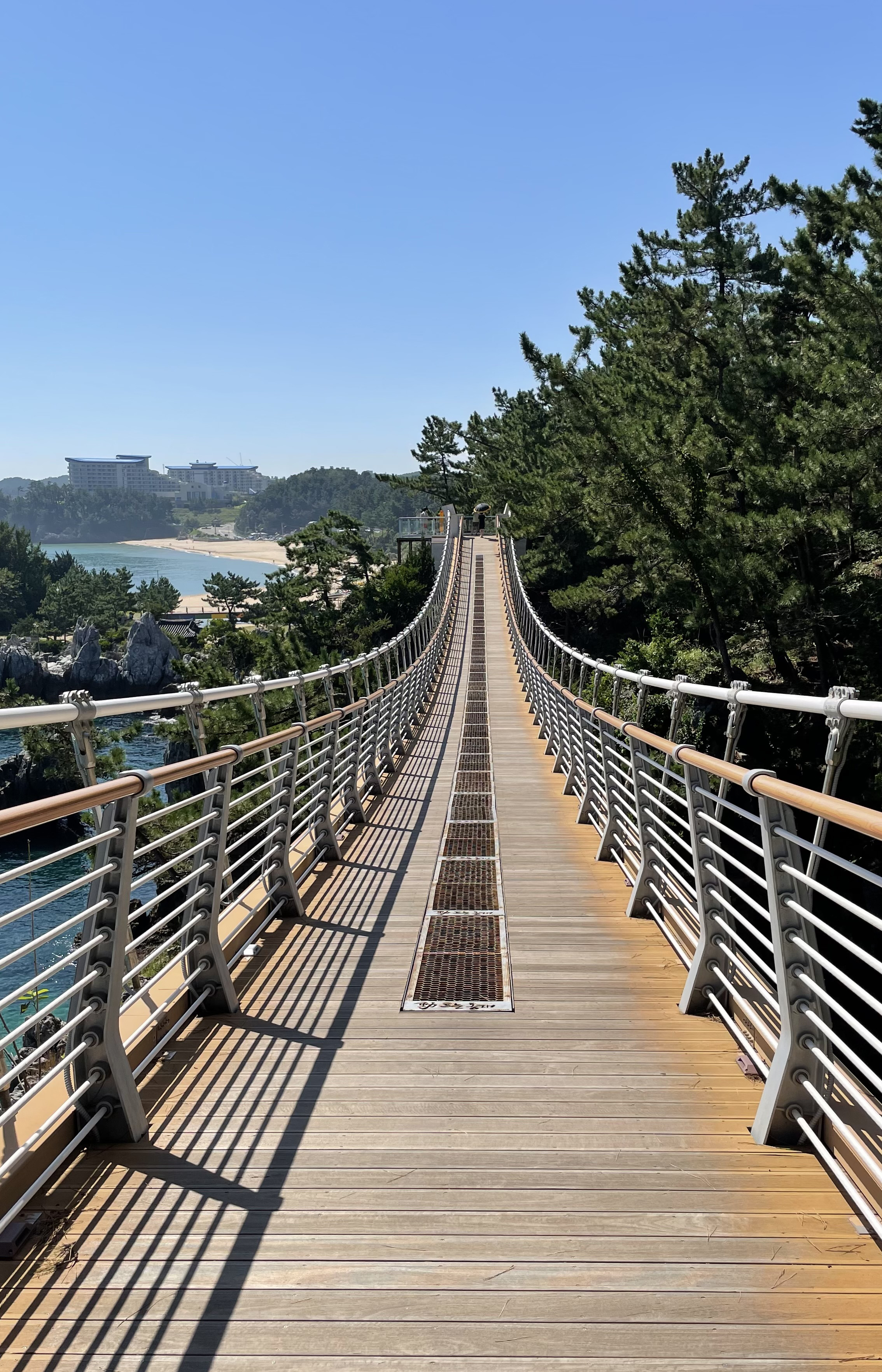바다를 건너도록 기암 위에 설치된 72m 길이의 출렁다리는 짜릿함을 줌과 동시에 동해를 배경으로 사진을 남길 수 있는 포토존이기도 합니다.