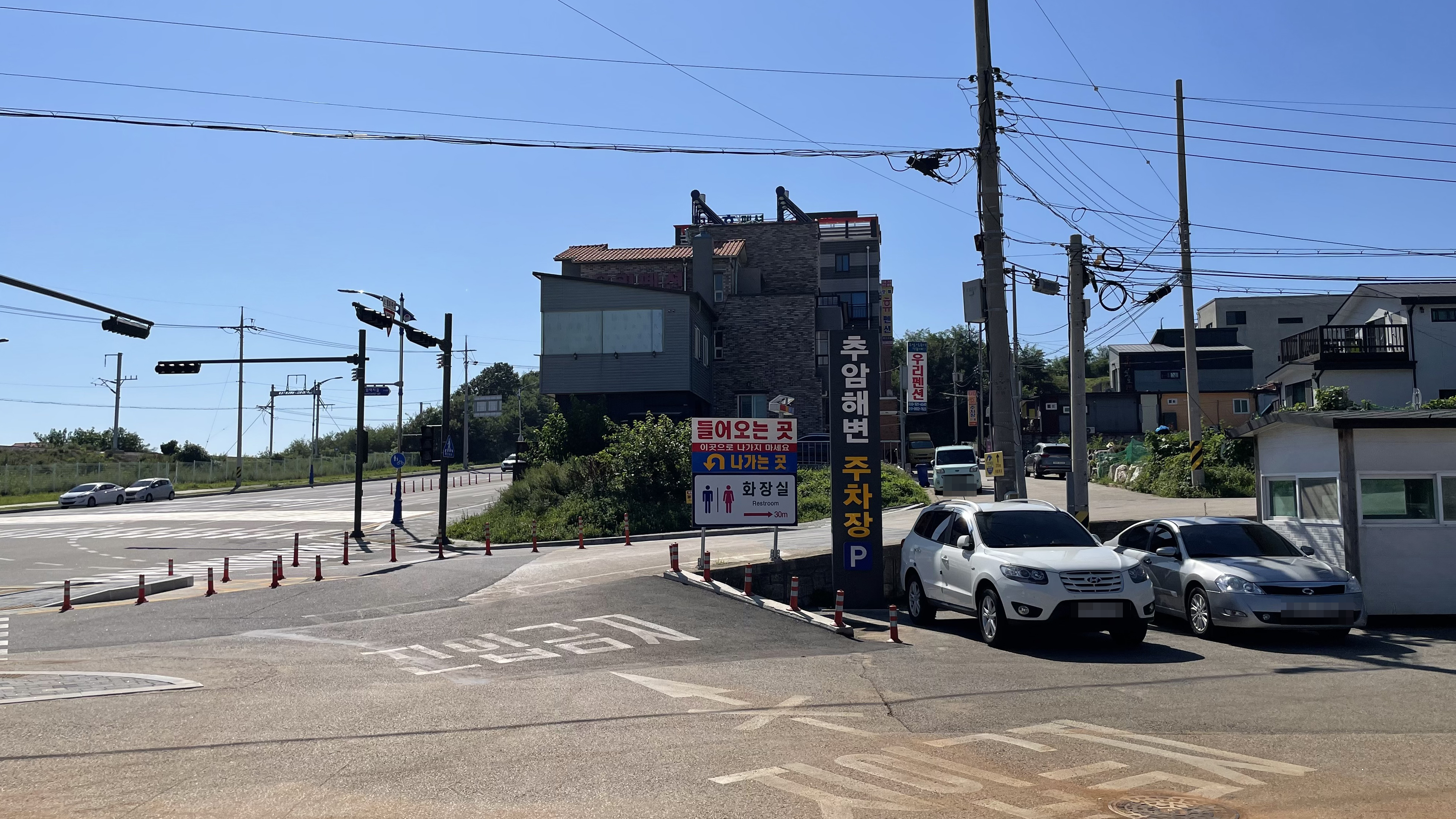 추암해변 공영주차장 앞으로 아주 큰 대게 음식점이 있어서 찾기는 쉬우실 거에요.