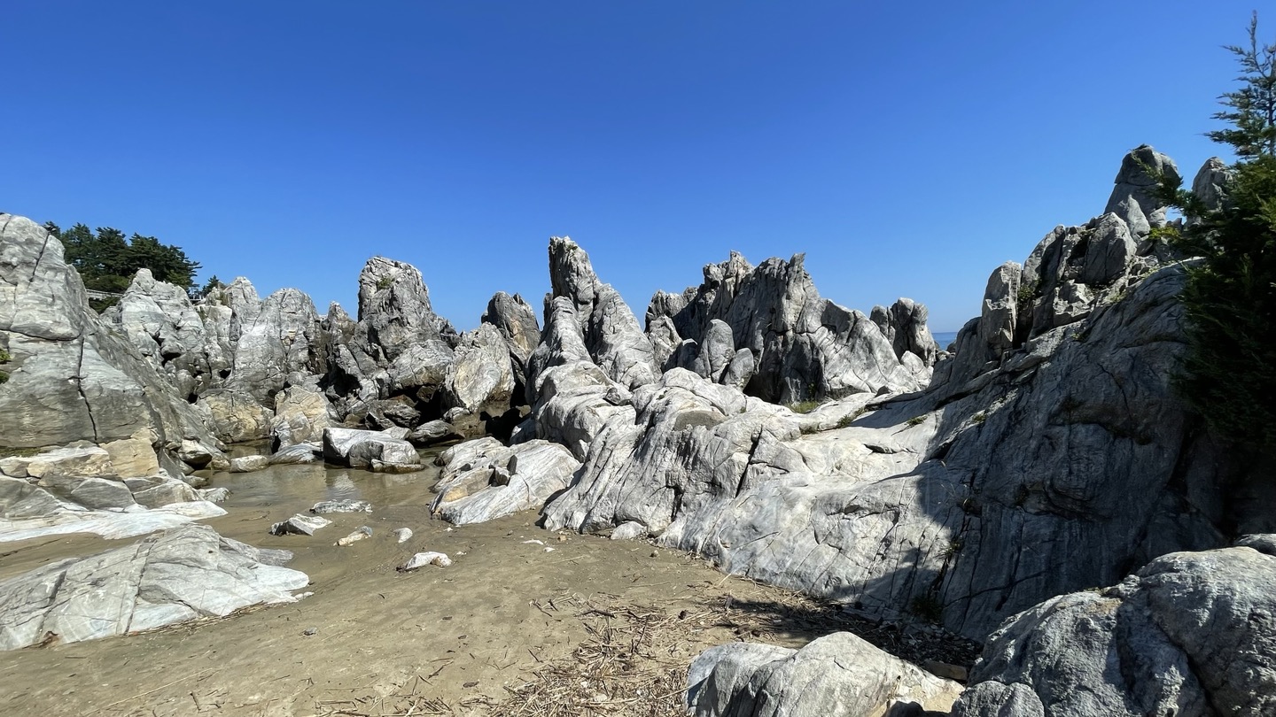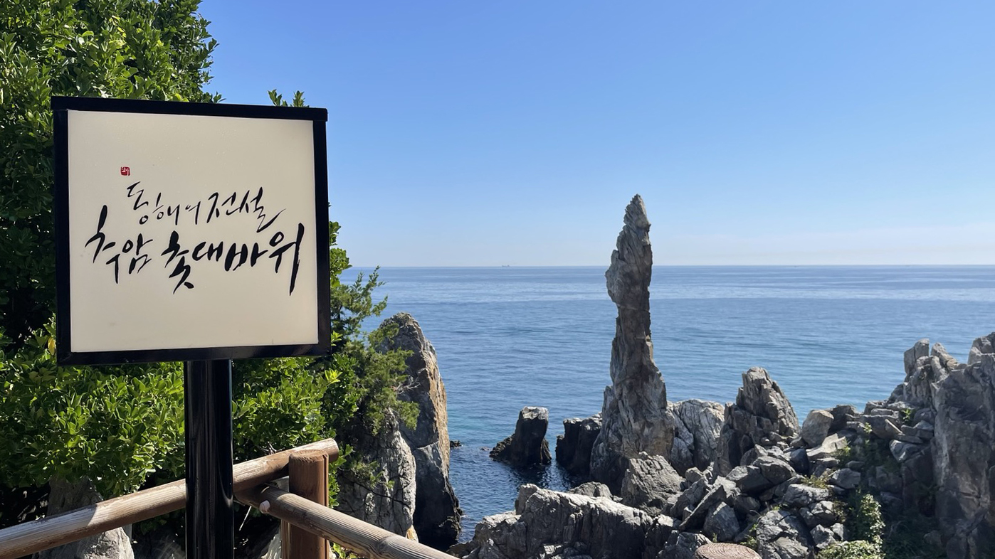 촛대바위 주변에 솟아오른 약 10여 척의 기암괴석은 동해바다와 잘 어우려져 절경을 만들어 냅니다. 그 모양에 따라 형제바위, 코끼리바위, 부부바위, 두꺼비바위, 거북바위 등으로 불린다고 하네요.^^