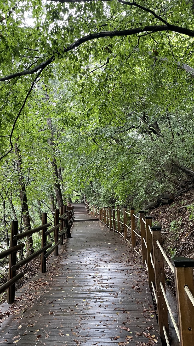 계곡을 따라 데크 산책로가 깨끗하게 잘 정비되어 있어 편하게 걸을 수 있어요. 아이들과 함께 걷기에도 무리 없습니다.