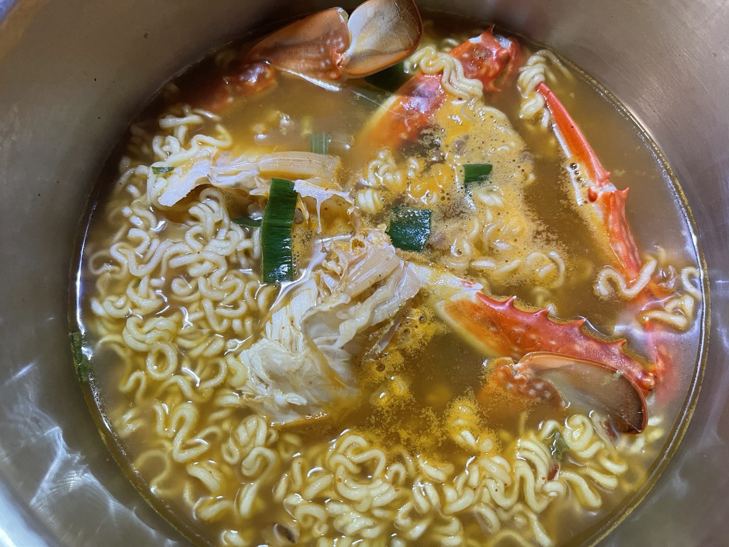 꽃게찜을 맛있게 먹고 아쉬운 마음에 꽃게 라면도 하나 더 끓였어요.ㅎ