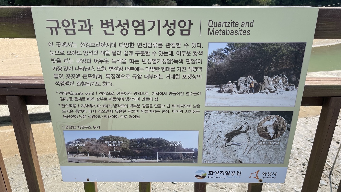 데크길로 들어서면 오른쪽에 기암절벽이 보이는데요, 이 곳의 지질구조에서 선캄브리아 시대때의 변성암류를 관찰할 수 있다고 합니다.