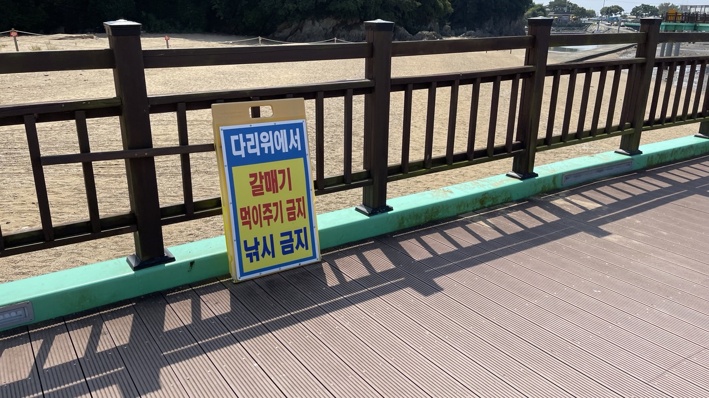 안전한 산책길을 위해 다리위에서 갈매기 먹이주기랑 낚시는 금지에요~~