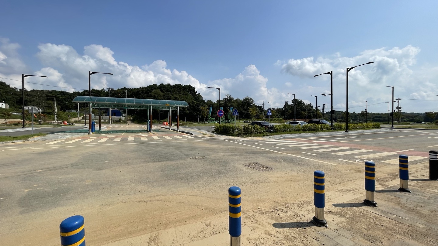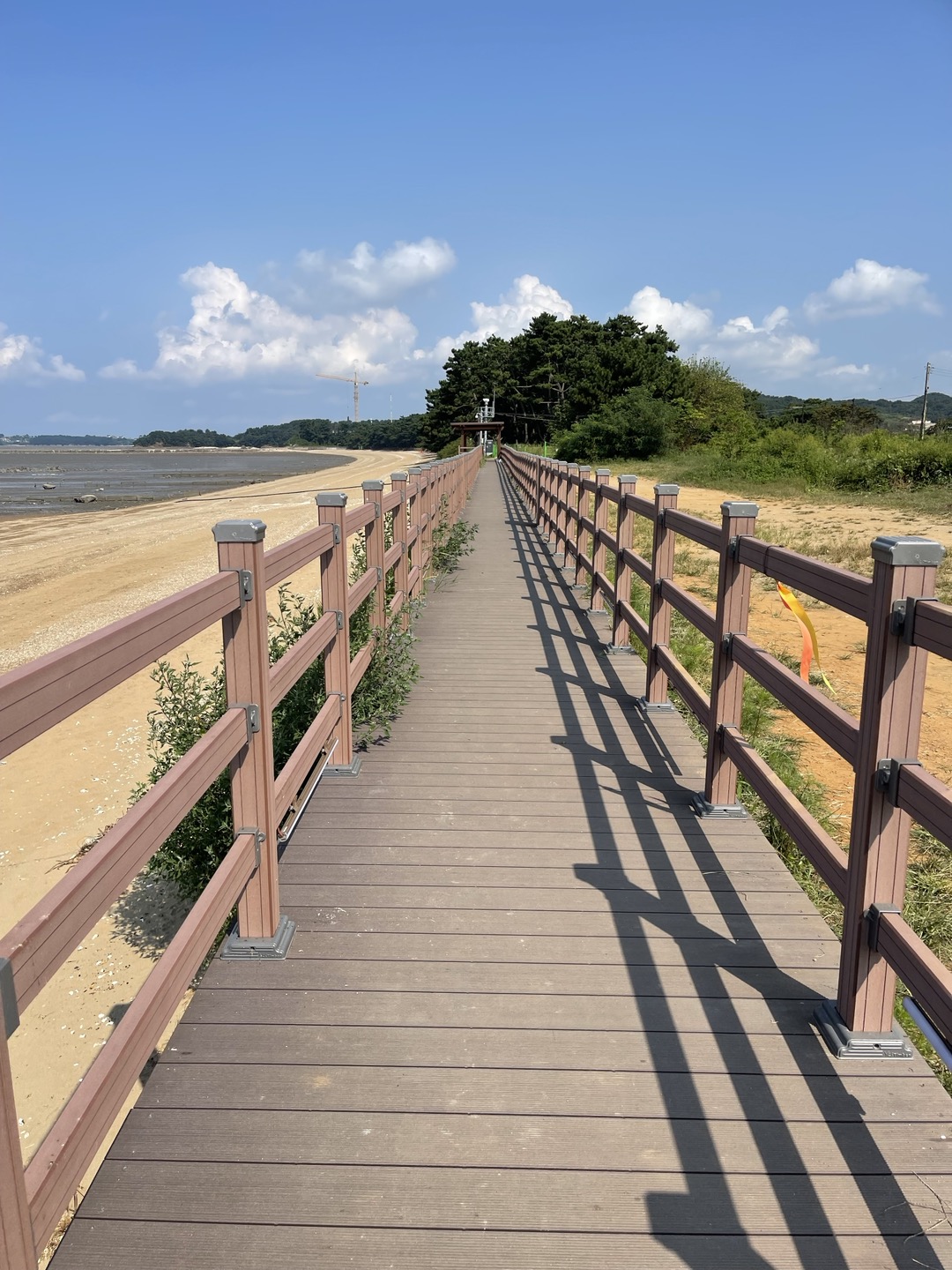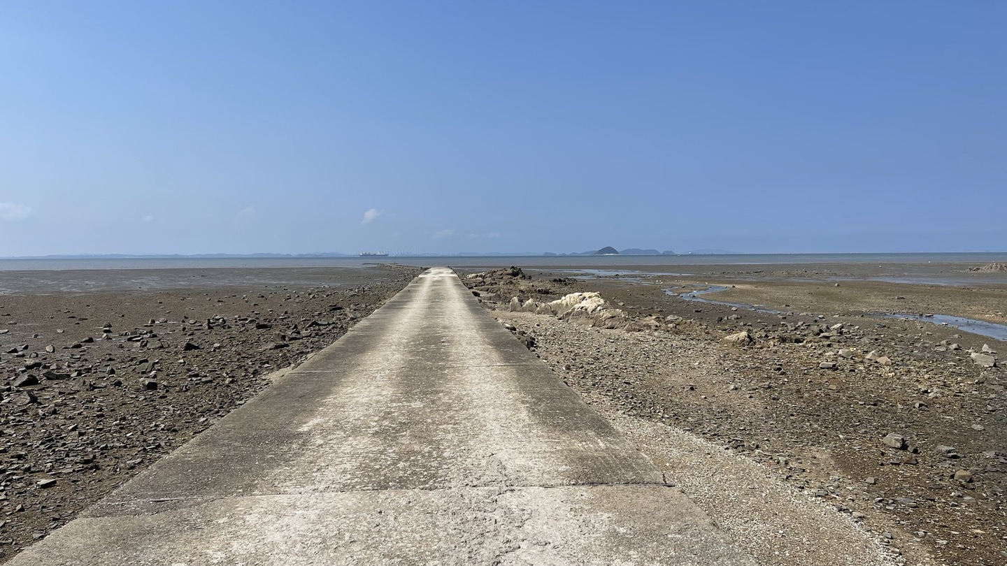 오솔로공원에서 다시 해변가로 나오니 갯벌 사이로 길게 뻗은 바닷길이 보였습니다.