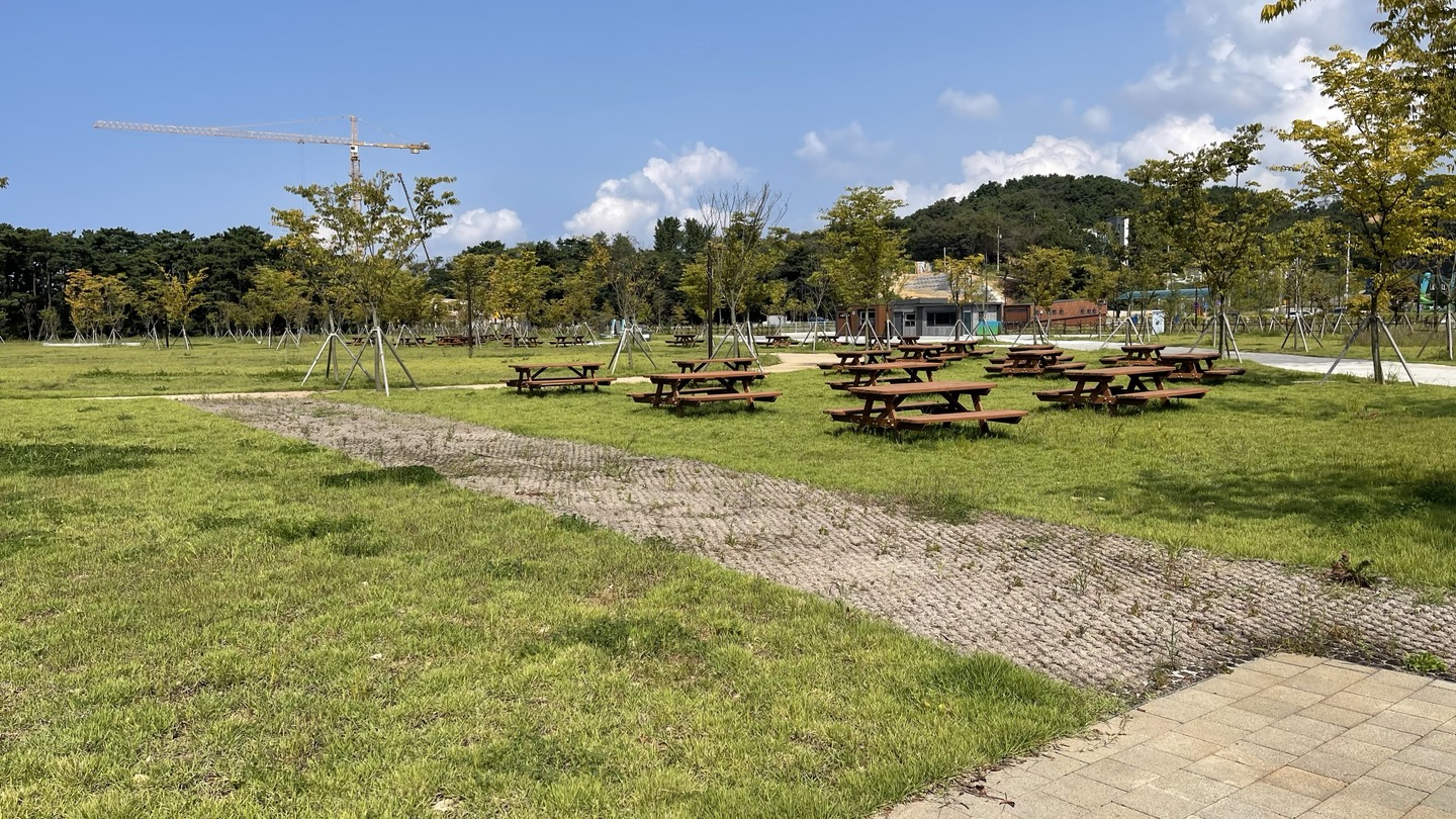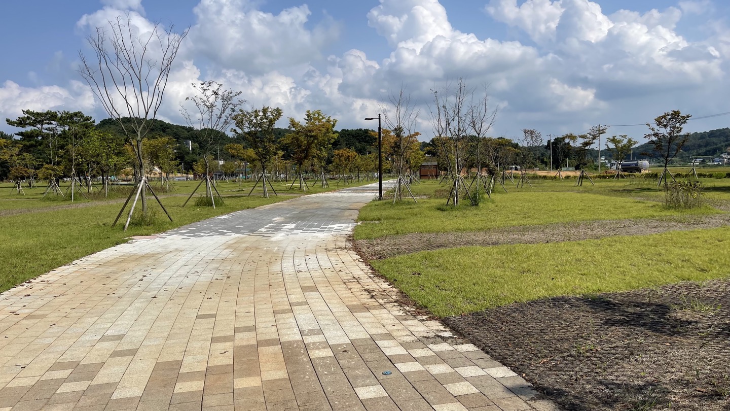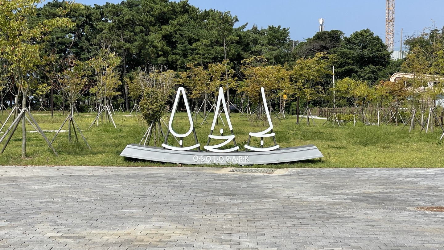 가까이 가서 살펴보니 '오솔로공원' 조성 사업이 한창 진행되고 있었어요. 아직은 개방 전이라 시설물 이용은 좀 더 기다려야 하겠네요.