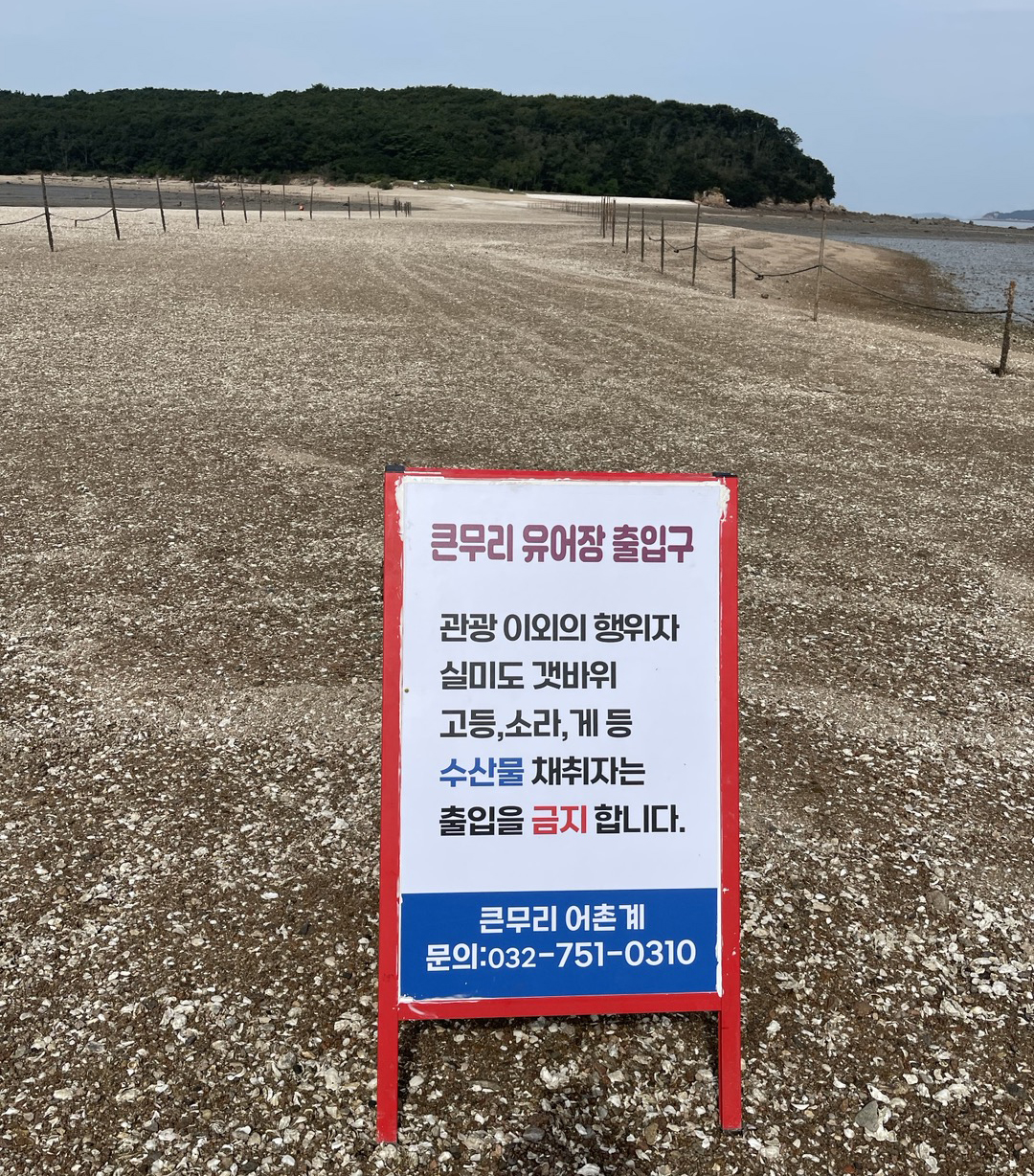 이 곳은 관광 이외의 수산물 채취가 금지되어 있는 곳이니, 갯벌체험을 원하시면 바지락 체험장에서 진행되는 프로그램을 이용하셔야 해요.