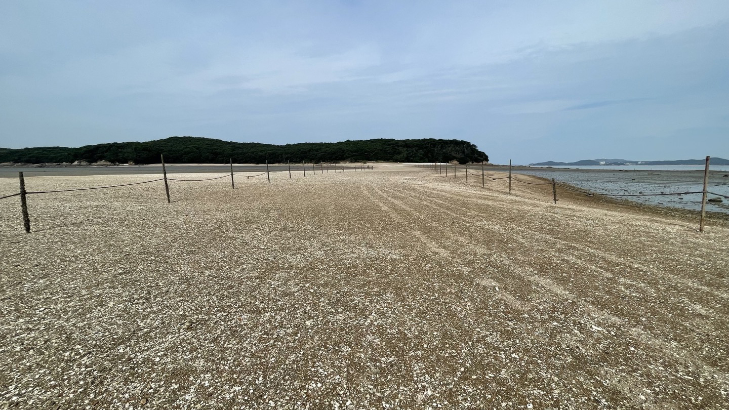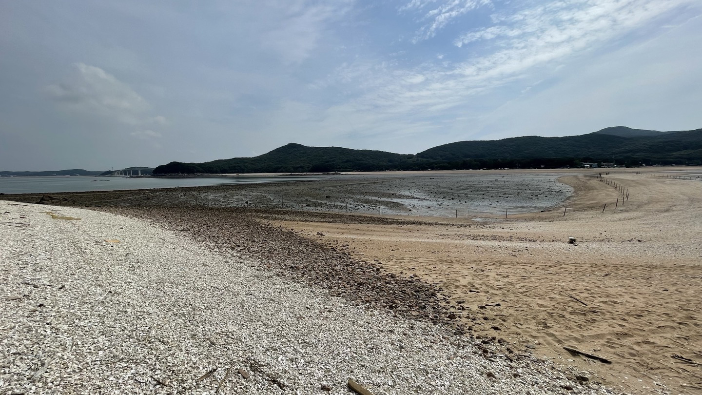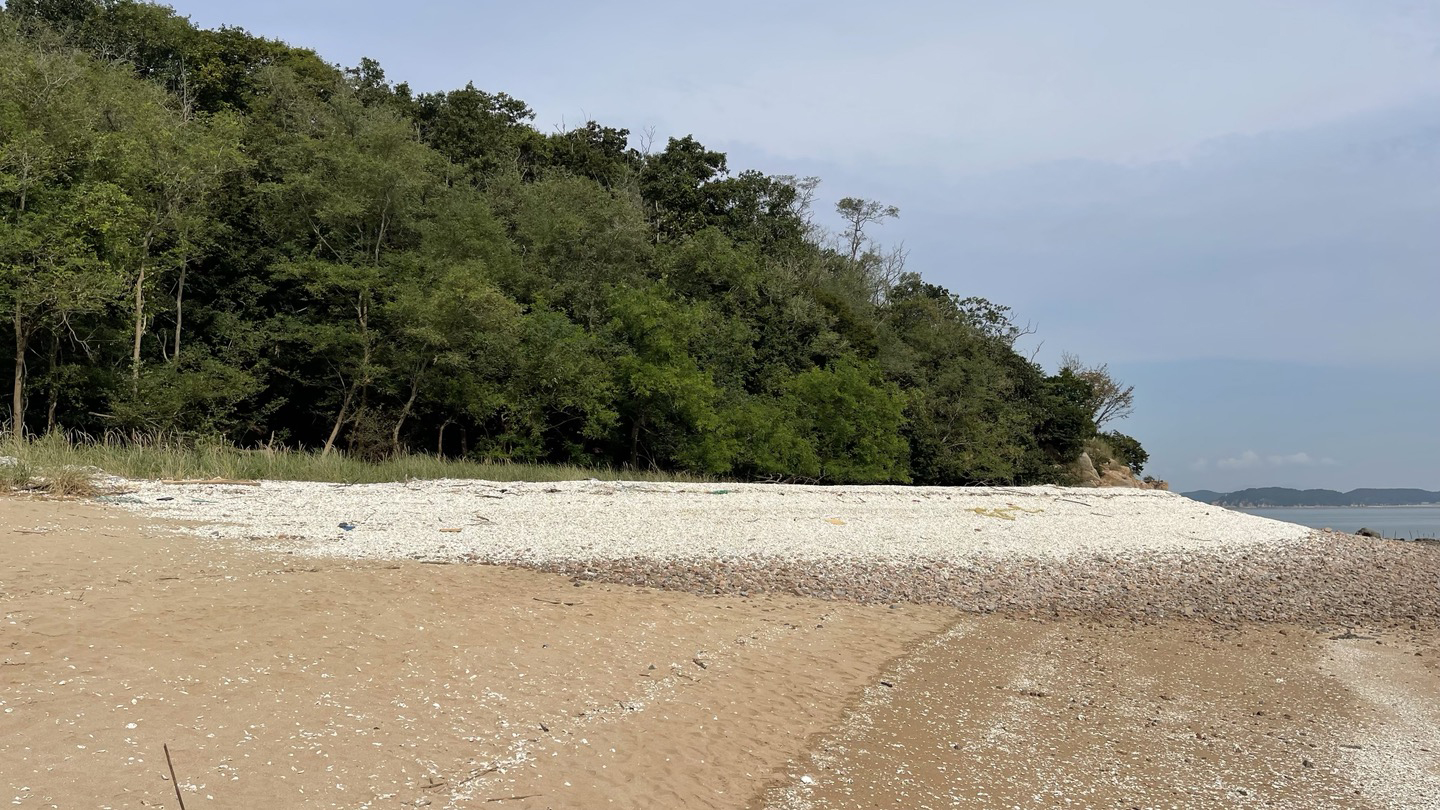 섬 중간중간 흰색 지대가 있어서 가봤더니 뽀얀 굴껍질이 잔뜩 쌓여 있습니다. 바닷물에 밀려 온 굴껍질들이 계속 쌓여 독특한 풍경을 만듭니다.