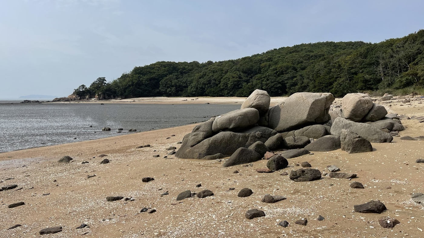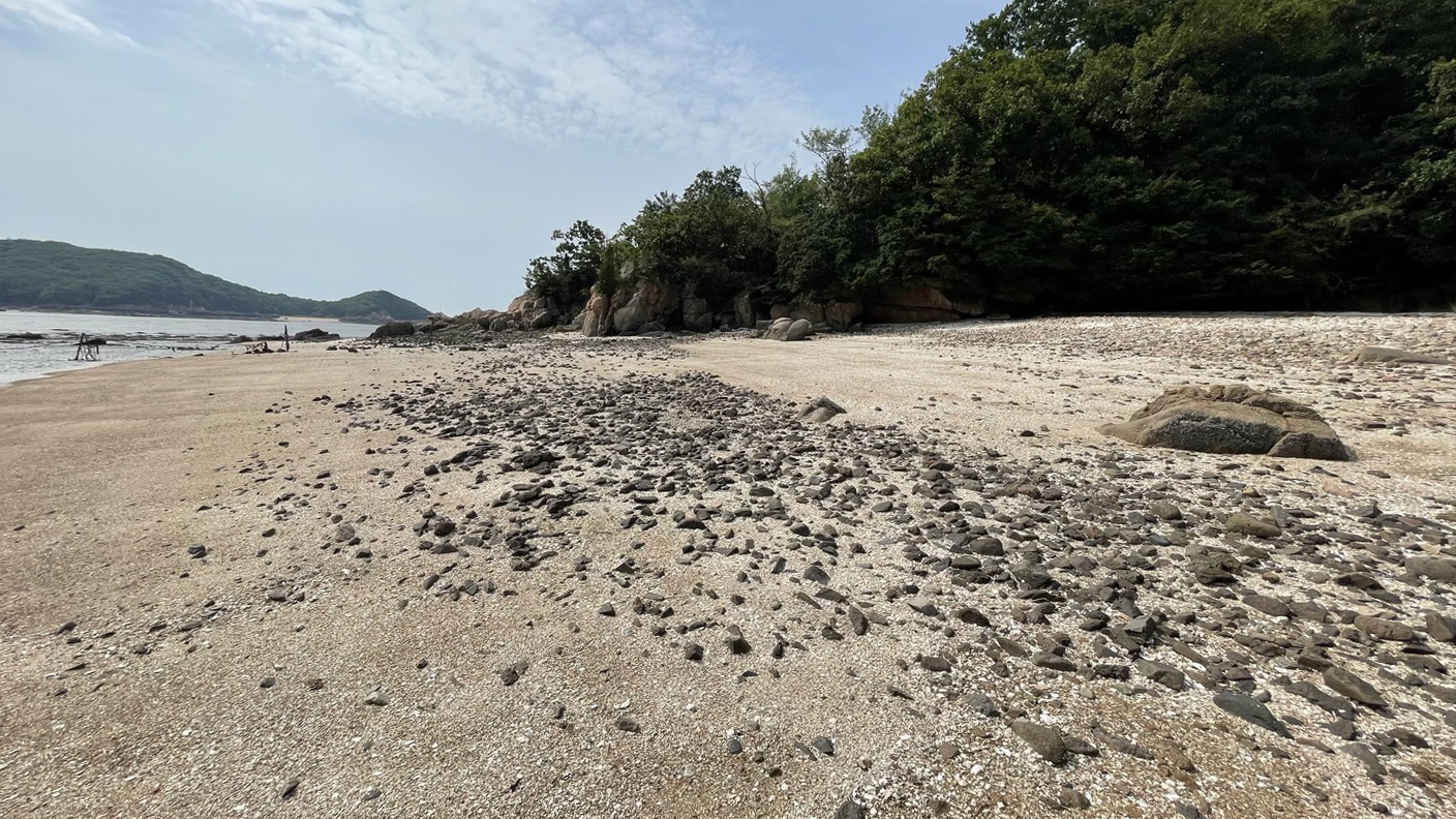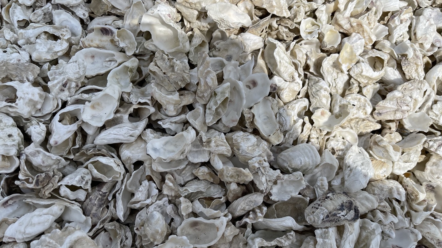 섬 중간중간 흰색 지대가 있어서 가봤더니 뽀얀 굴껍질이 잔뜩 쌓여 있습니다. 바닷물에 밀려 온 굴껍질들이 계속 쌓여 독특한 풍경을 만듭니다.
