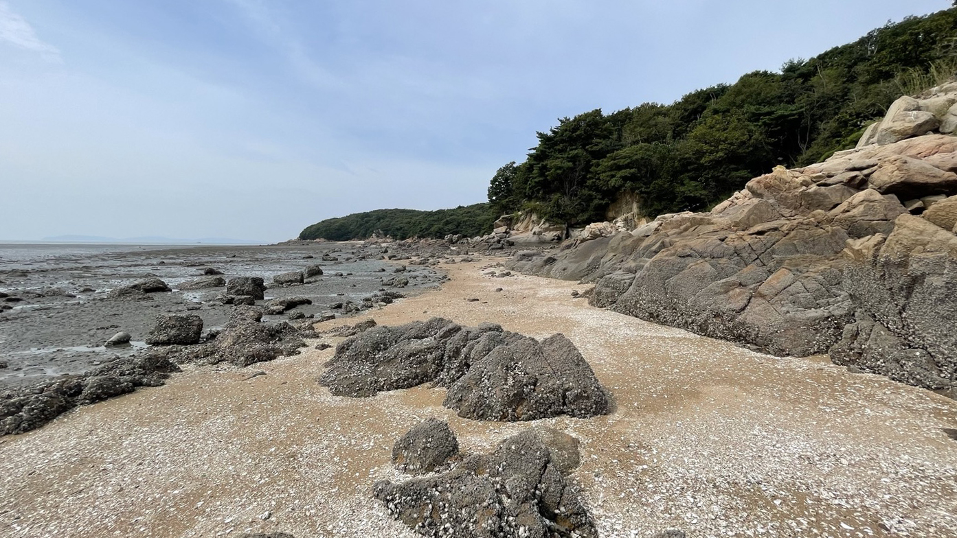 물이 빠지고 드러난 넓은 갯벌 주변을 걸으니 크고 작은 바다 생물들이 재빠르게 길을 내어줍니다.
