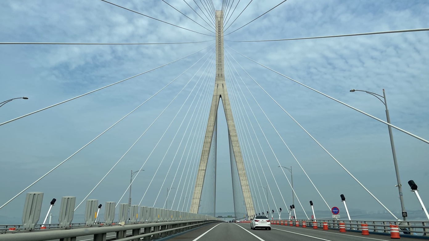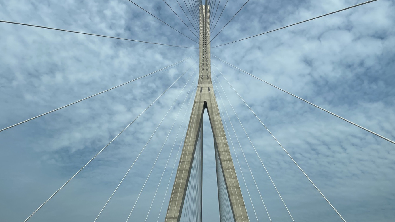 구름 덮인 하늘과 인천대교의 구조가 어우려져 멋진 장면을 만들어 냅니다.