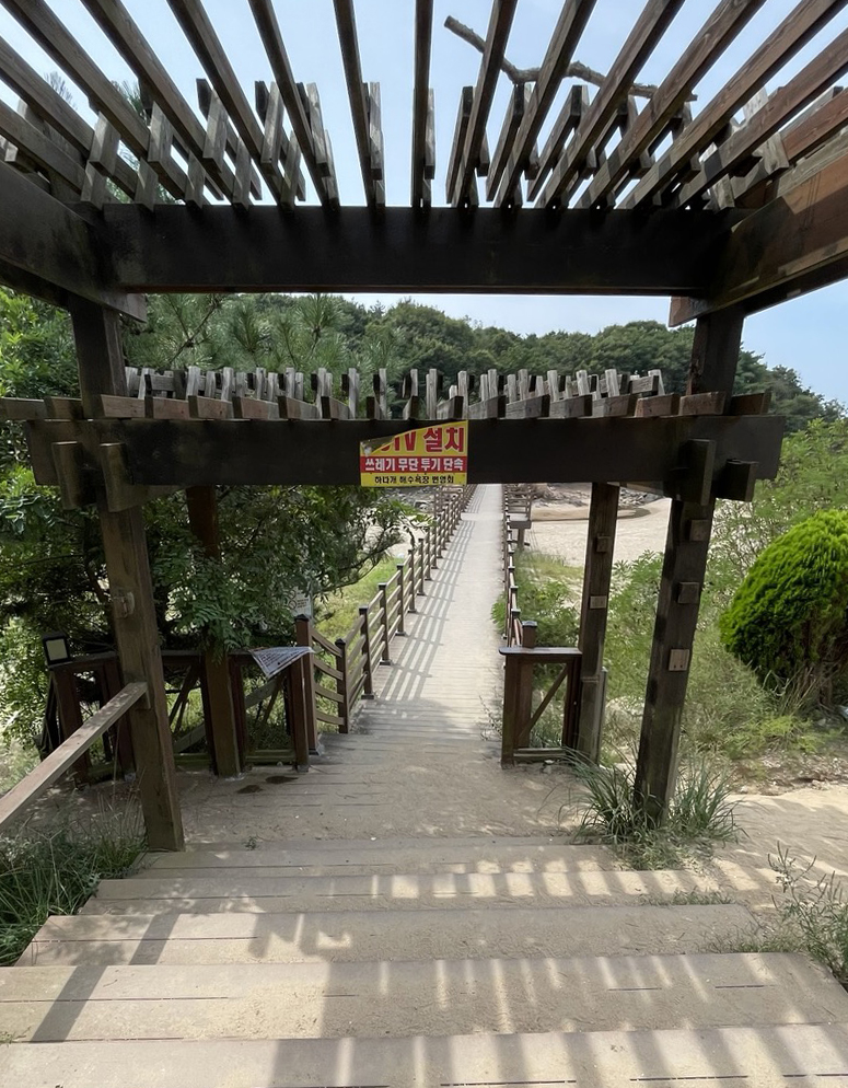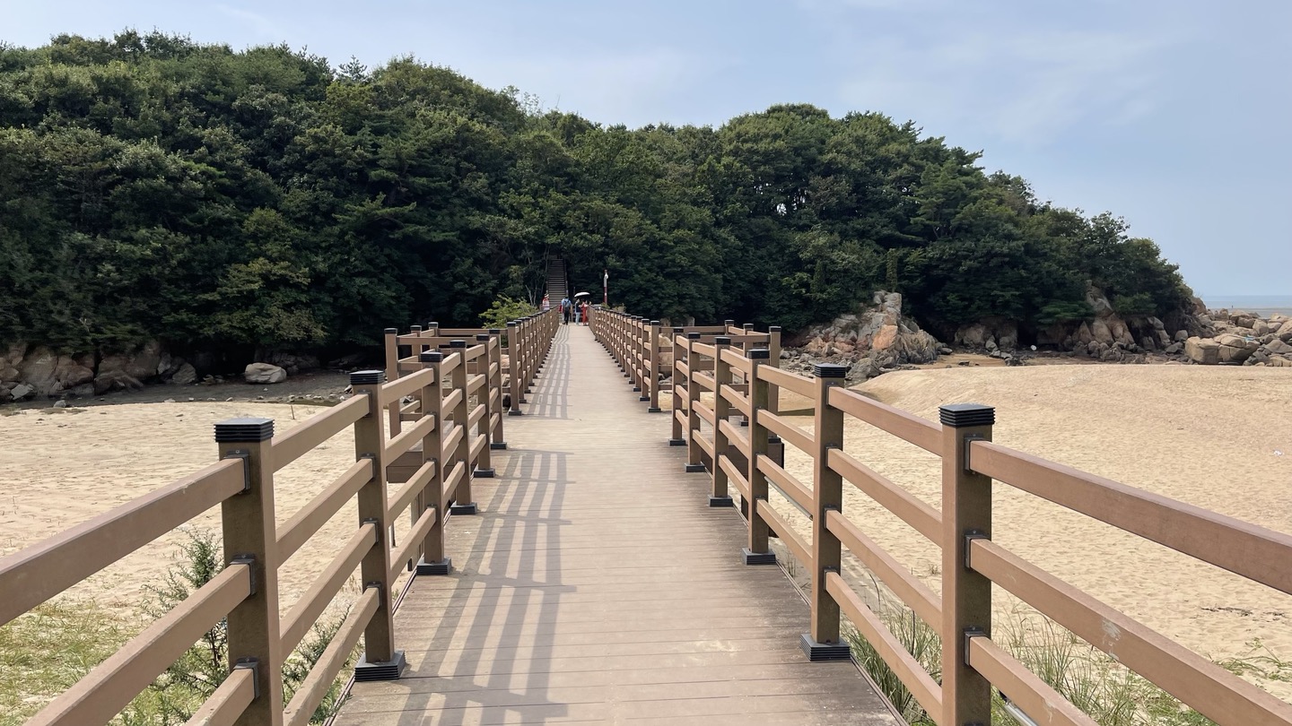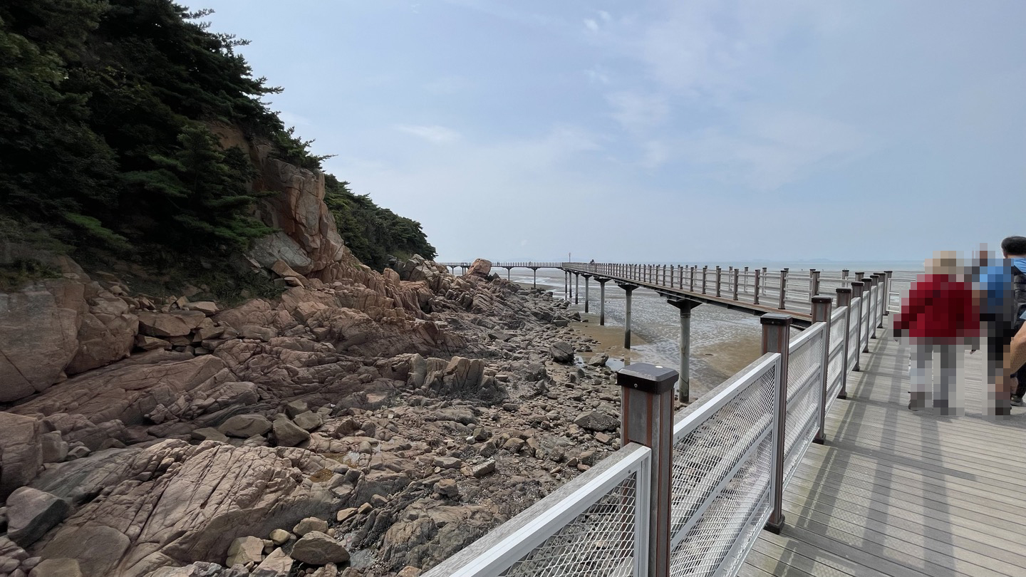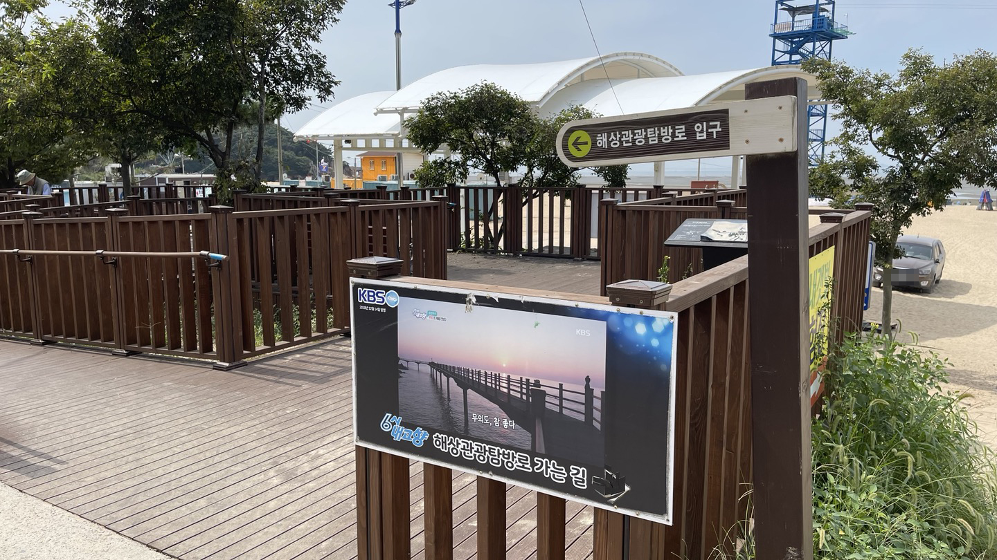 해수욕장 입구를 지나오면 해상관광탐방로 입구로 이어지는 데크길이 바로 보입니다.