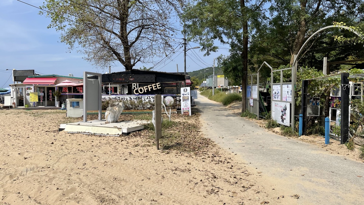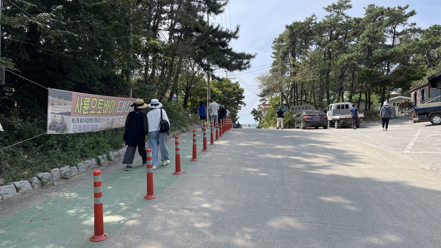 해상관광탐방로를 나와서 하나개 해수욕장을 잠깐 둘러보고 배를 채우기 위해 해변가에서 가까운 식당가로 향했습니다.