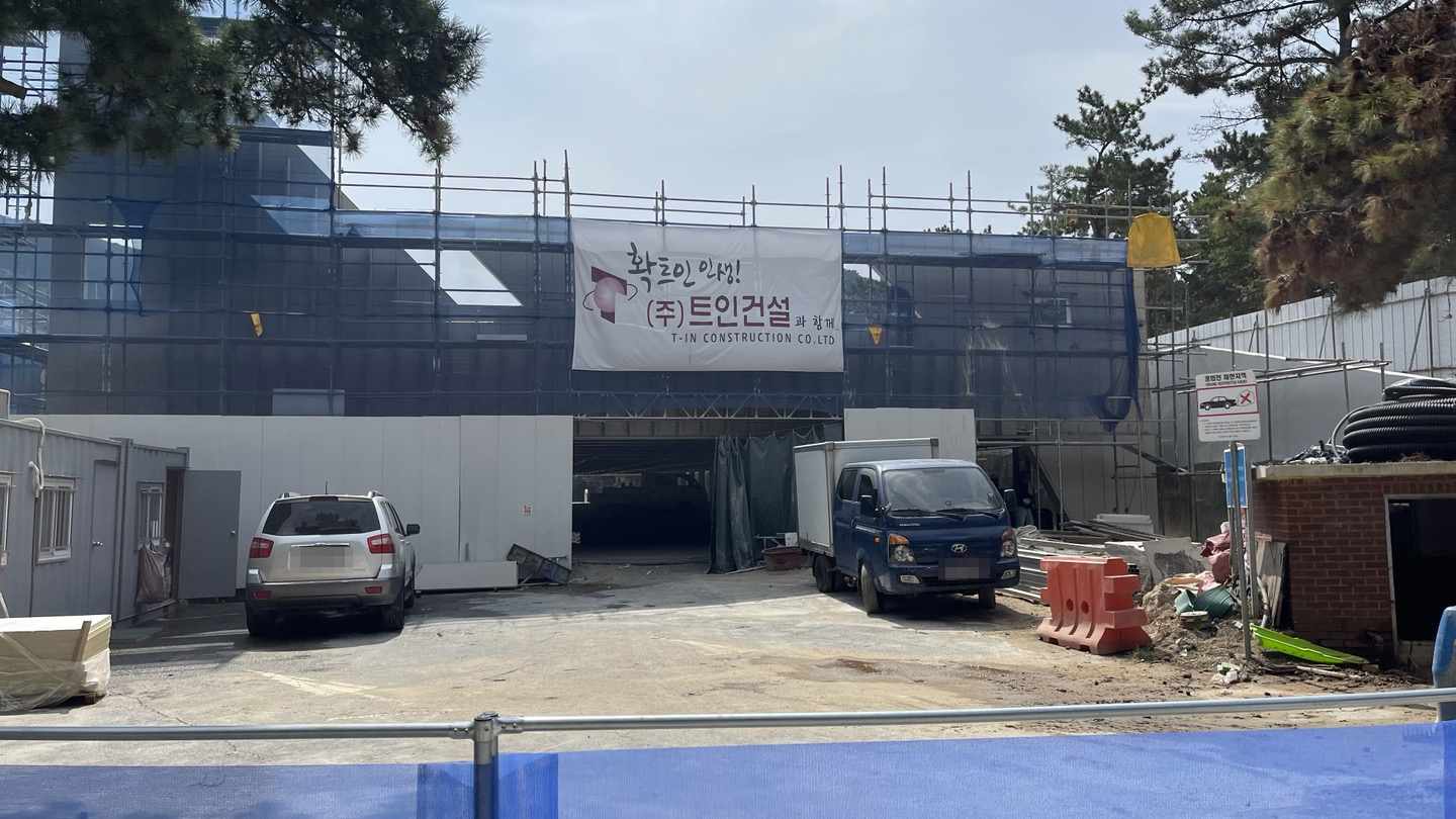 입구 쪽 말고도 주차장 공사현장 뒤로 큰 공터가 있으니 그 곳에 주차하면 됩니다.