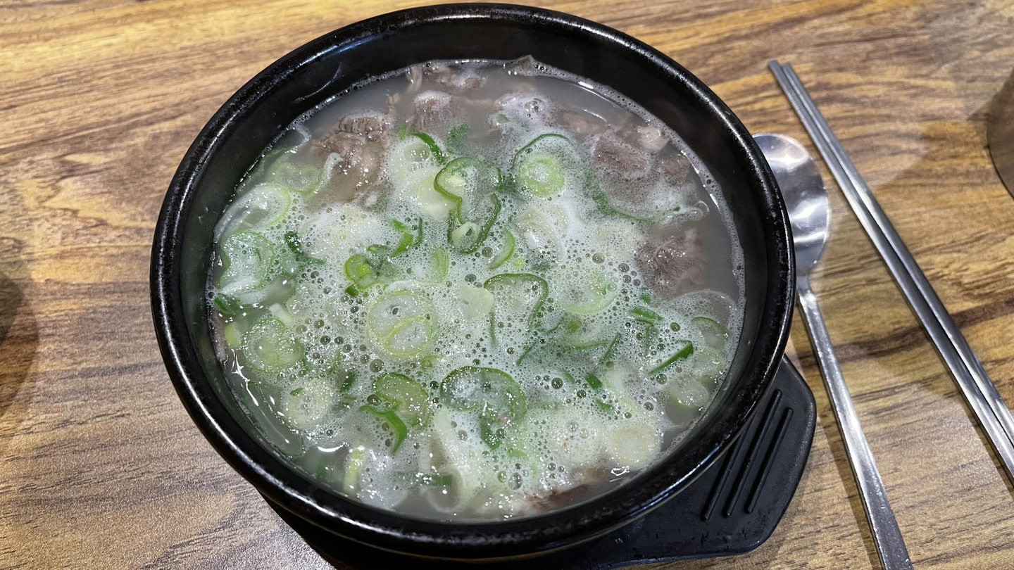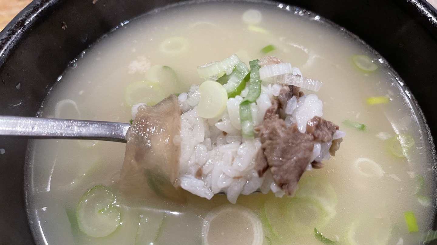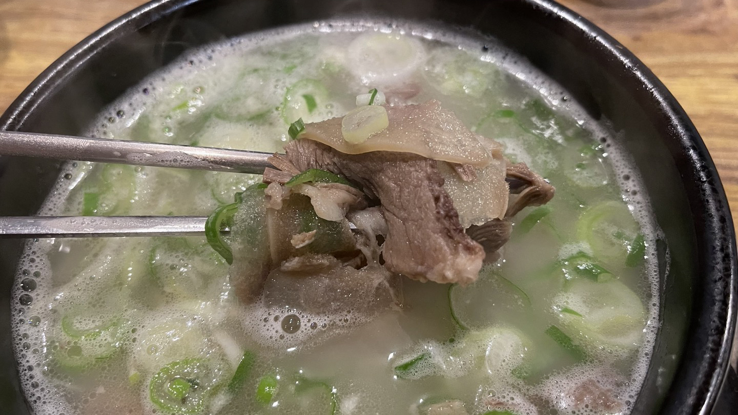 주문한 국밥이 나왔습니다. 얇게 썬 소머리고기가 충분히 들어있는데, 고기를 얇게 썰어서 그런지 훨씬 부드럽게 느껴졌습니다.