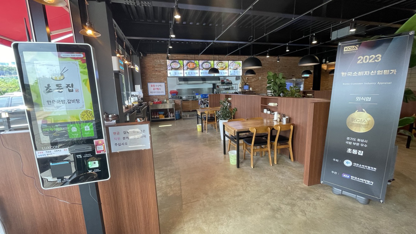 출입구 앞에 있는 키오스크로 주문을 하고 자리에 앉았습니다.