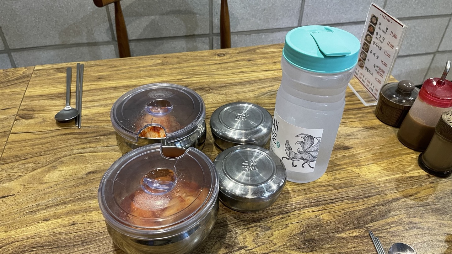 기본반찬인 배추김치와 깍두기, 그리고 공기밥이 먼저 나왔습니다.