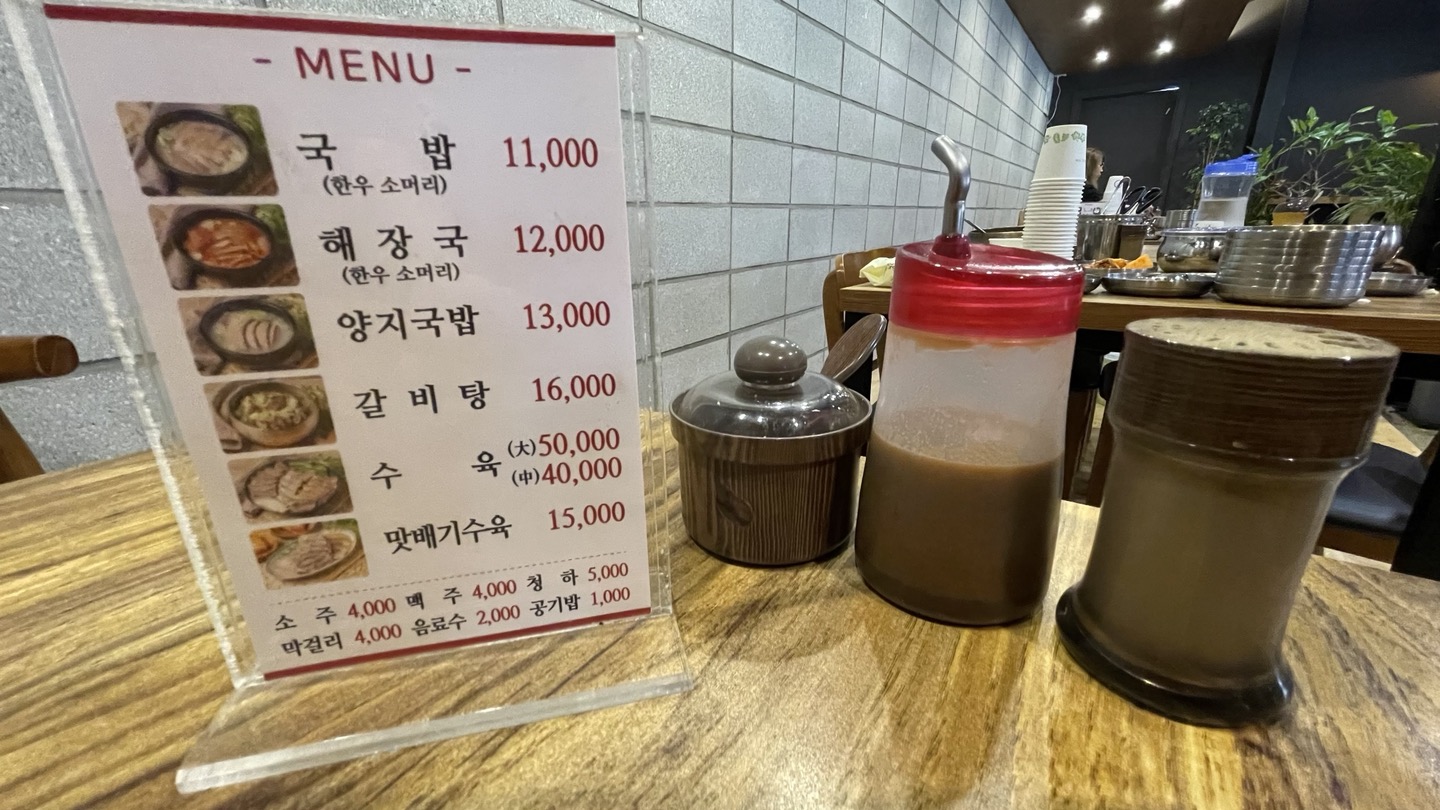 주문한 국밥이 나왔습니다. 얇게 썬 소머리고기가 충분히 들어있는데, 고기를 얇게 썰어서 그런지 훨씬 부드럽게 느껴졌습니다.