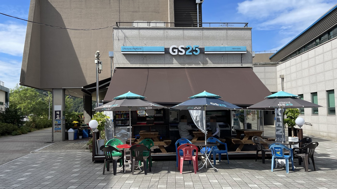 C코스 끝에 도착하니 용인조정경기장, 용인시선수단훈련장, 편의점과 빌라촌, 식당가가 위치해 있습니다.