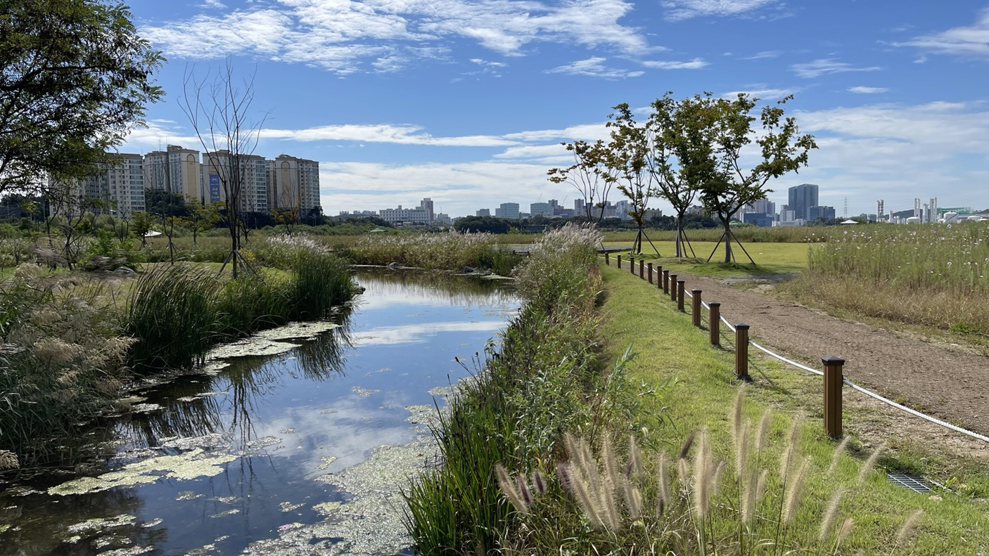 기흥호수공원생태학습장 모습입니다. 생태학습장 옆으로 기흥호수로 향하는 데크길이 이어져 있습니다.