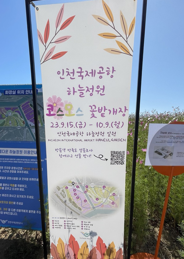 인천국제공항 하늘정원 코스모스 꽃밭개장은 23.9.15(금)~10.9(월)까지입니다. 기한이 얼마 남지 않았으니 방문계획이 있으시다면 참고하세요~