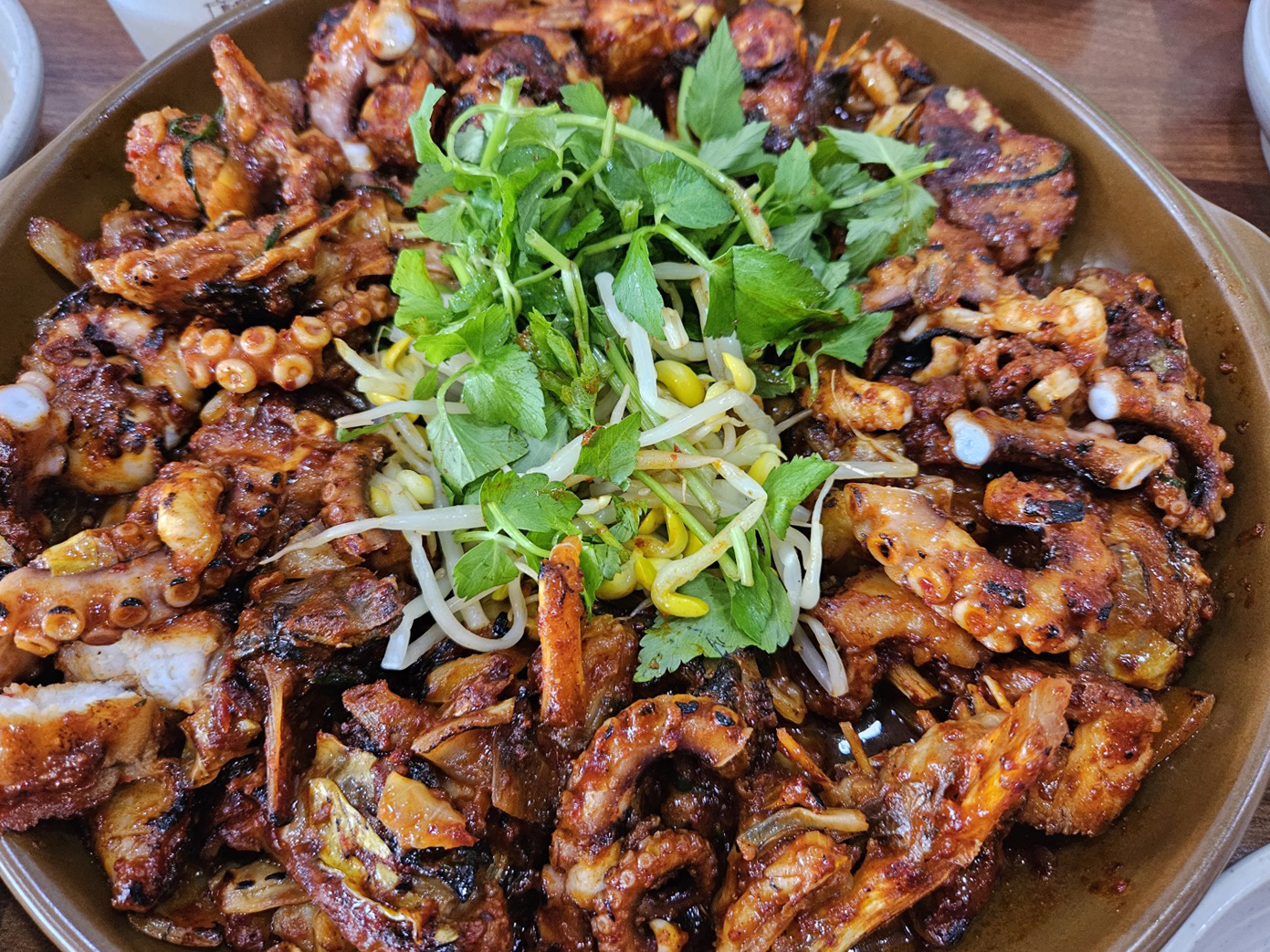 낙지와 아귀가 같이 들어있는데, 불향이 가득하고 보기와는 다르게 많이 맵지 않아서 아이들 먹기에도 괜찮았어요. 낙지는 쫄깃쫄깃, 아귀살은 보들보들~ 너무 맛있었습니다.