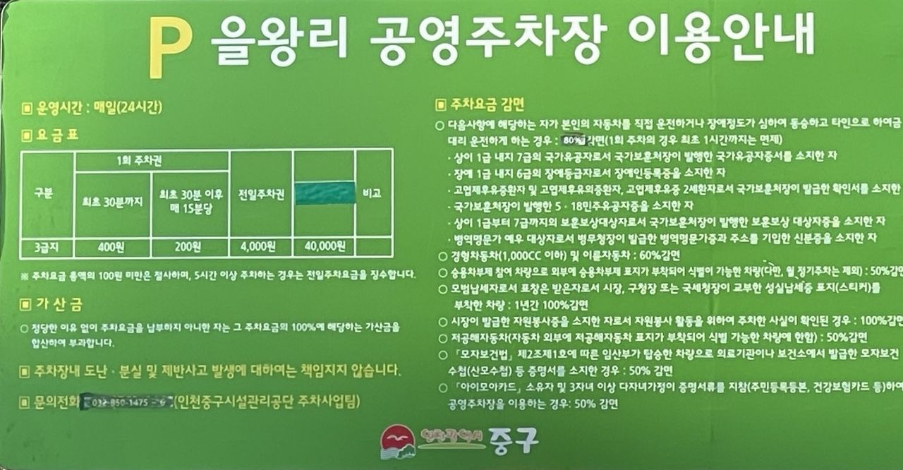 최초 30분까지는 400원, 그 이후부터는 매 15분당 200원, 종일은 4,000원으로 저렴한 편입니다.