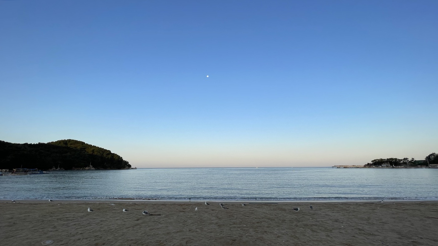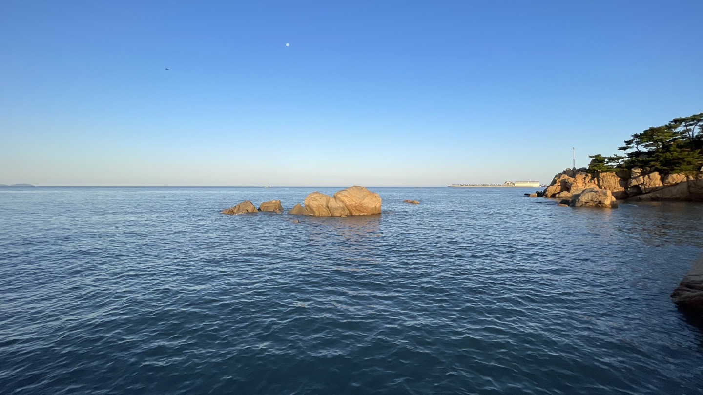 밤 늦게까지 폭죽소리에 시끌벅적하던 분위기는 온데 간데 없이 잠잠하게 펼쳐진 바다가 다른 곳 같이 느껴집니다.