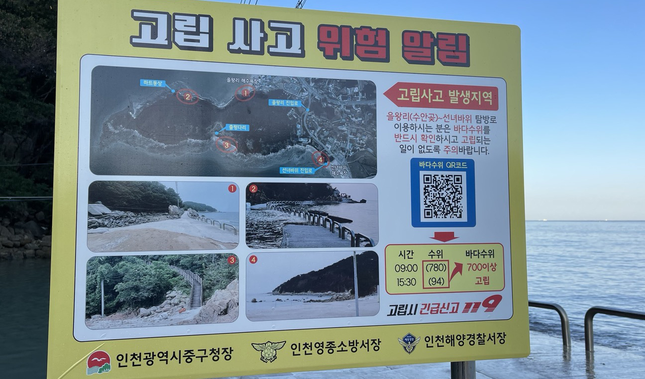 을왕리 선착장 반대편으로 가면 선녀바위 문화탐방로가 이어지는데요, 수위가 높아지는 시간때라 아쉽게도 들어가지 못하고 돌아왔습니다.