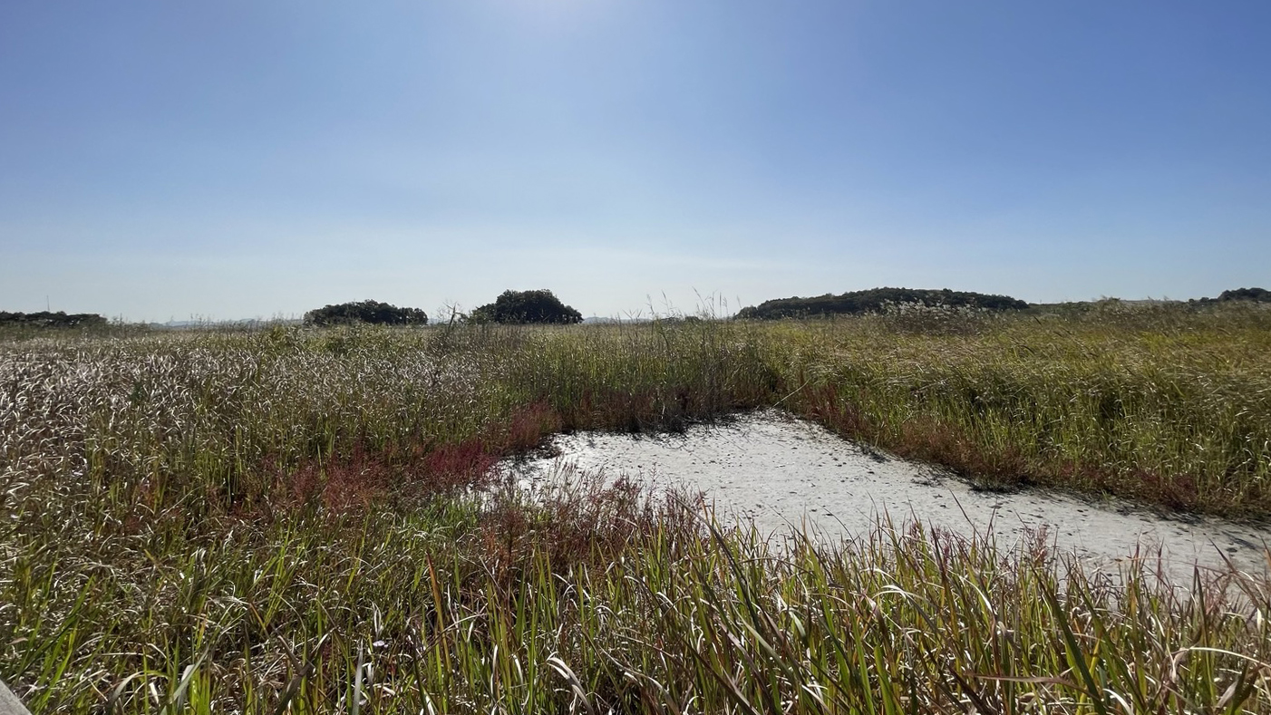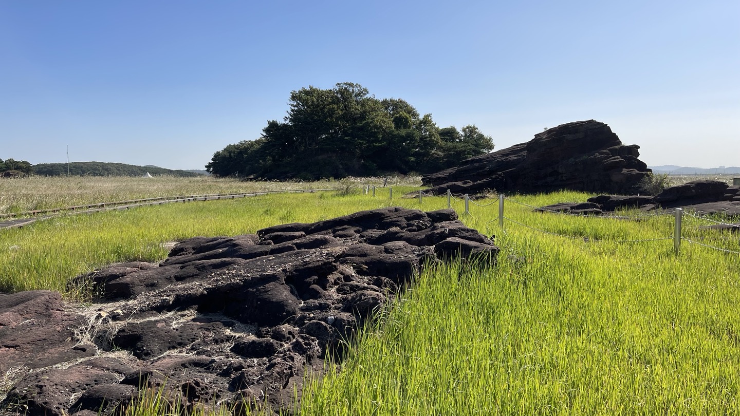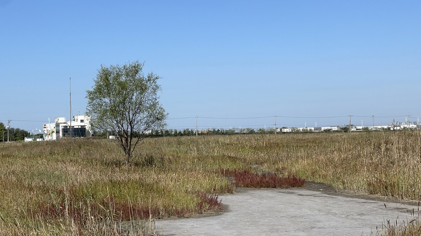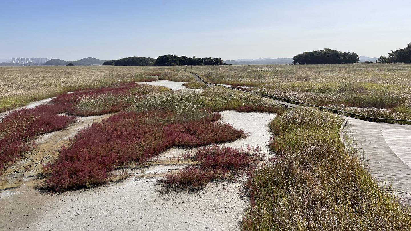 공룡알화석산지 지면에서는 하얀 소금기가 관찰됩니다. 이것은 공룡알화석산지가 시화호 물막이 공사 이전에는 갯벌이었기 때문입니다. 하지만 지금은 지면에 있던 소금기가 빠지면서 점점 육지화 되고 있으며 염생식물의 개체수도 점점 줄어들고 있다고 하네요.