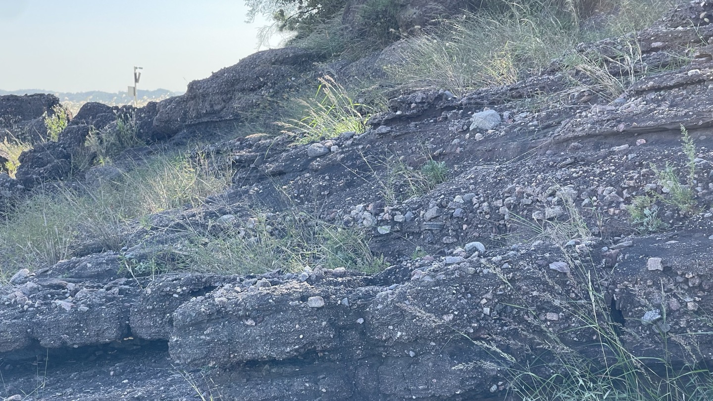 중한염의 퇴적층 구조를 가까이에서 관찰할 수 있습니다.
