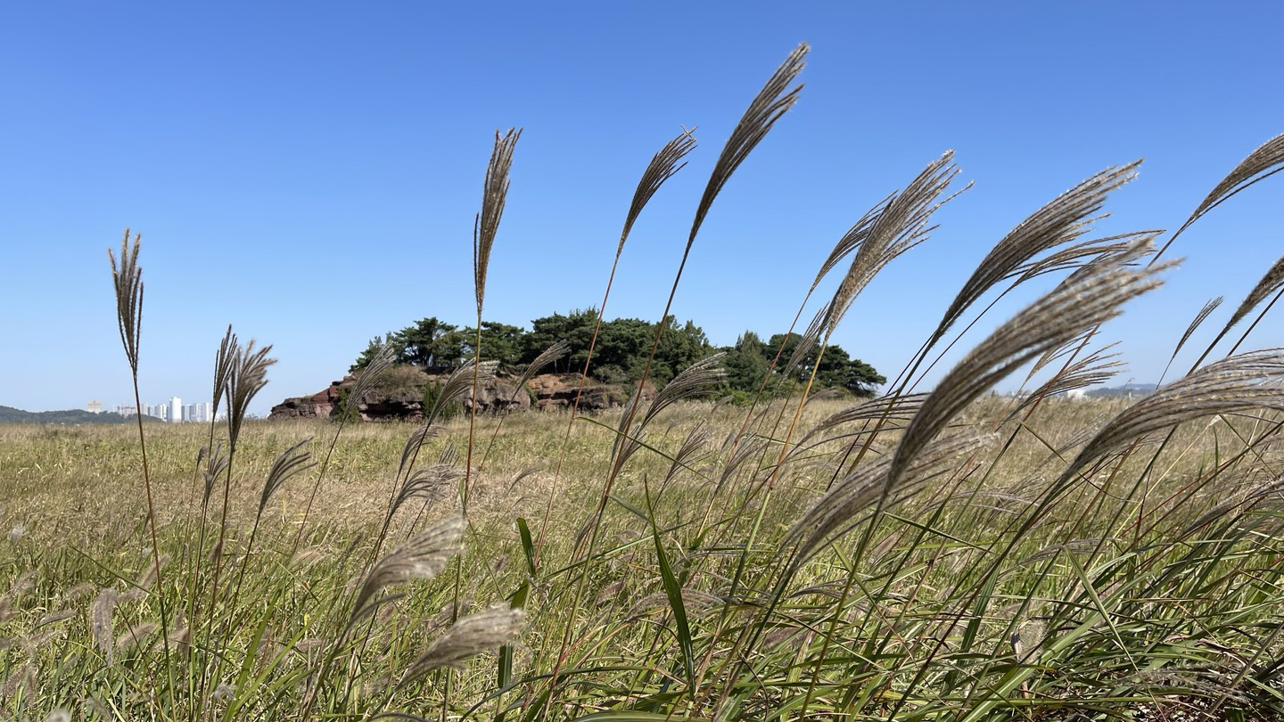 중한염 사잇길로 억새가 한창 피어있는데, 파란 하늘과 함께 멋스러운 풍경을 만들어 내고 있었습니다.