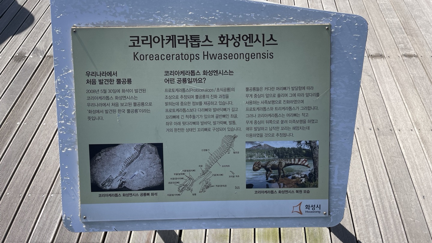 코리아케라톱스의 온전한 학명은 '코리아케라톱스 화성엔시스'에요. '화성에서 발견된 한국 뿔공룡'이라는 뜻으로, 우리나라에서 처음 발견된 뿔공룡입니다. 그 동안 조각으로만 발견되던 화석과는 달리 원형이 온전히 보존된 화석이 발견됨으로써, 국내 공룡화성 가능성이 확인되었다는 의의를 가지고 있습니다.