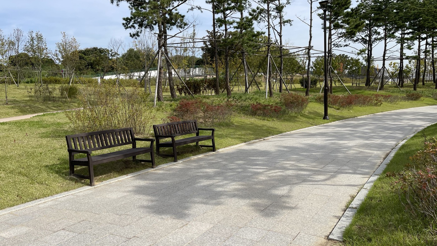 공원 중간중간 평상과 벤치들이 있습니다. 그늘이 거의 없는게 좀 아쉽네요.