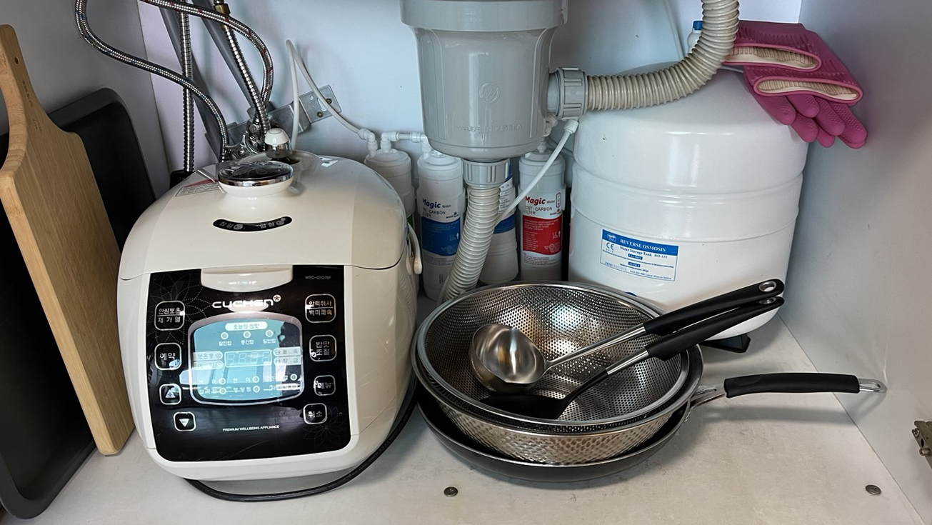 싱크대에 정수장치가 설치되어 있어 굳이 생수 챙겨오지 않아도 될 것 같아요.