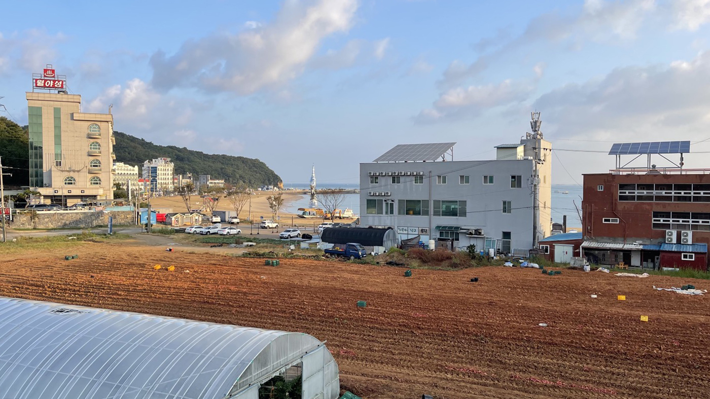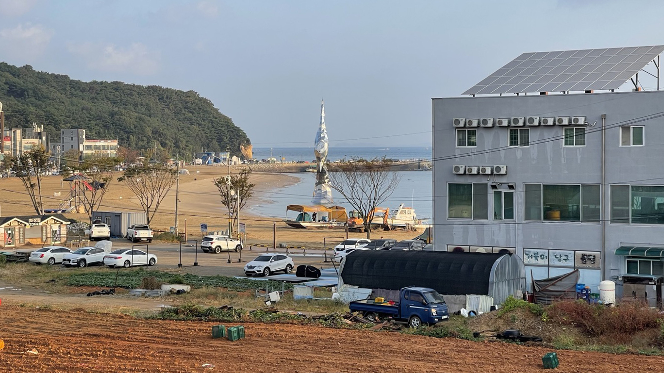 거실창을 통해 왜목해변과 '새빛왜목' 조형물이 보이네요.