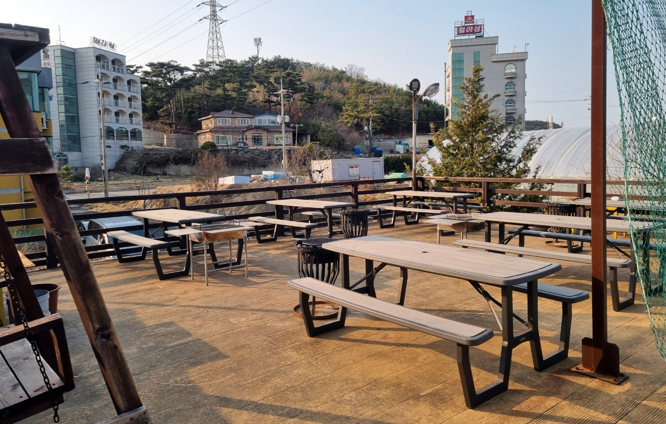 주차장 위층에 있는 바베큐장 모습이에요. 바베큐장 옆으로 체육시설이 있어서 아이들 놀게하기 좋아 보이네요.