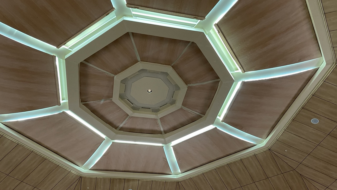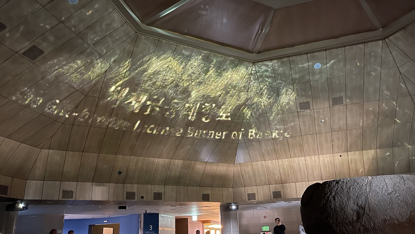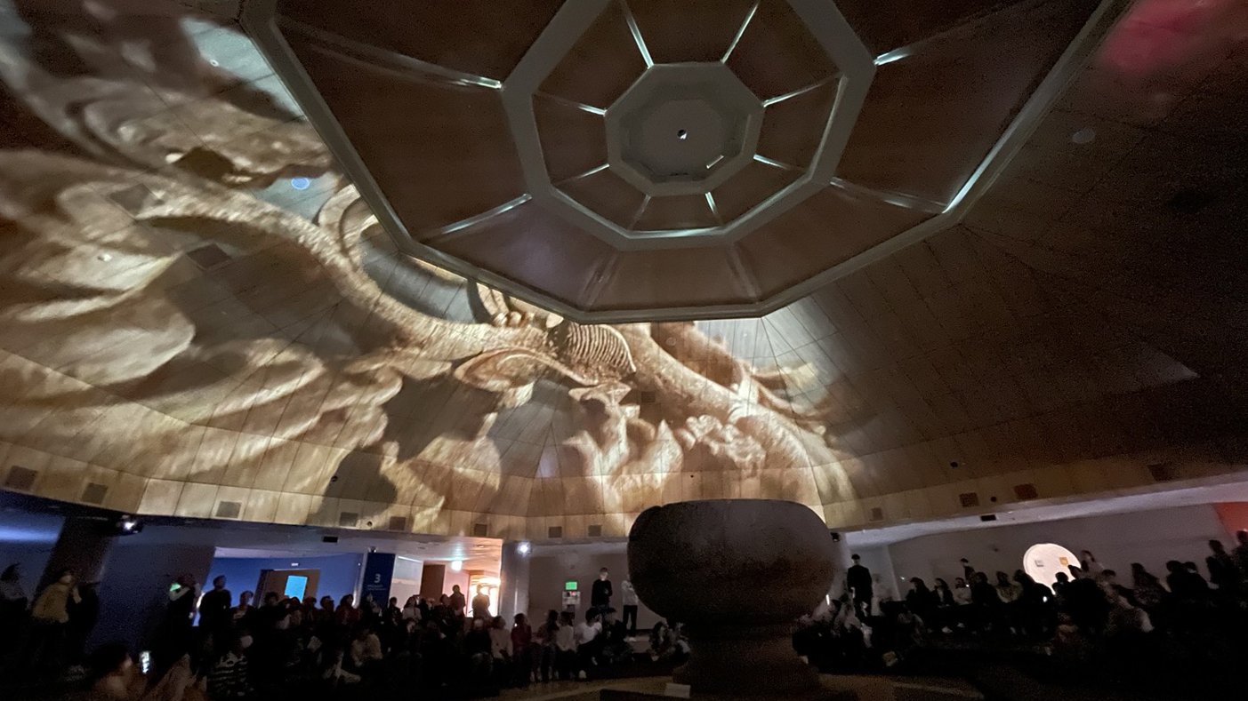 전시관 로비의 천장 유리창이 닫히고 천장 전체를 스크린 삼아 상영이 시작됩니다.