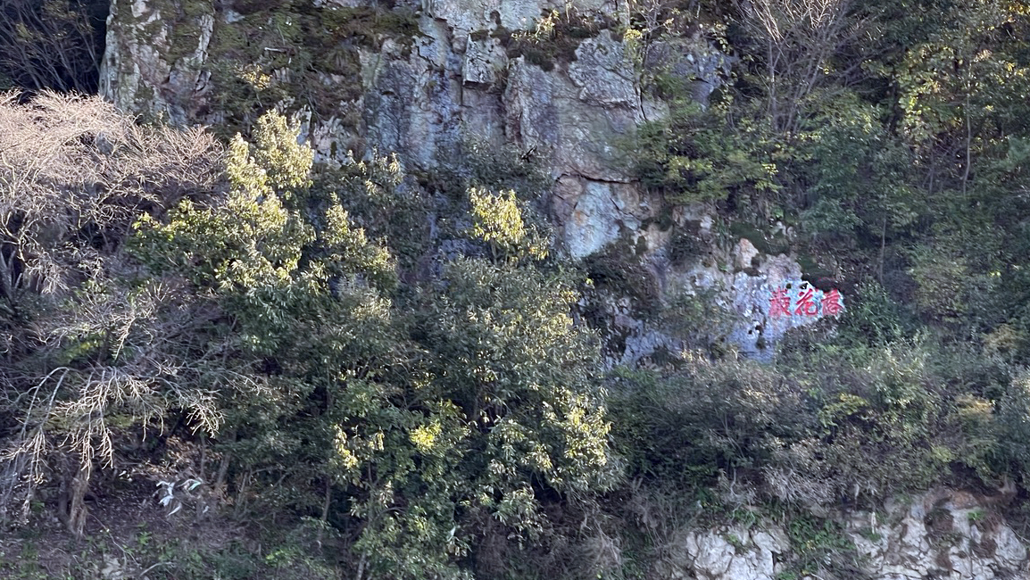 유람선이 부소산 옆을 지나갈 때 바위에 '落花巖(낙화암)'이라고 쓰인 붉은색 글자가 보입니다.