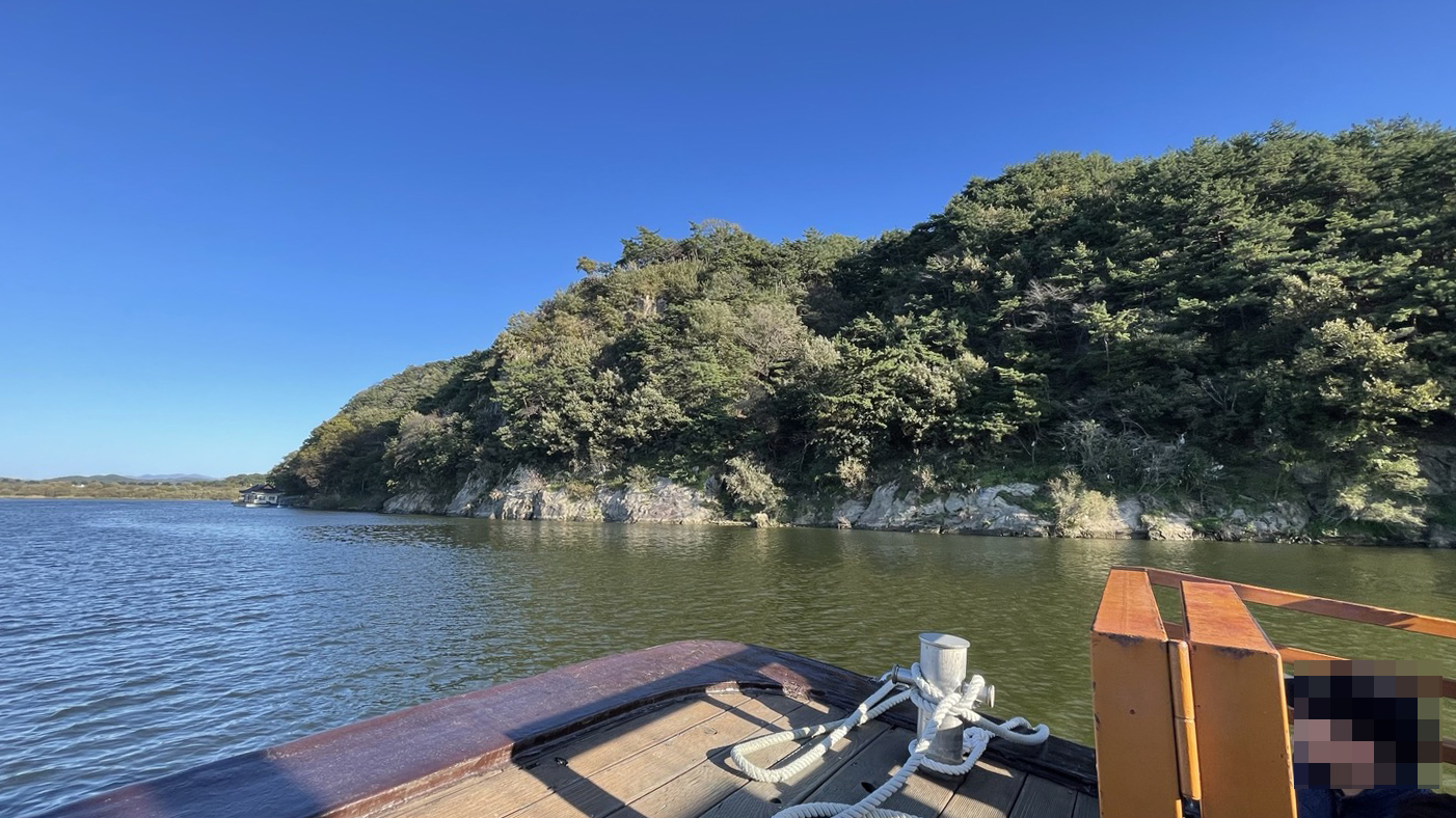 유람선을 타고 백마강을 가로지르는 기분이 아주 상쾌합니다.