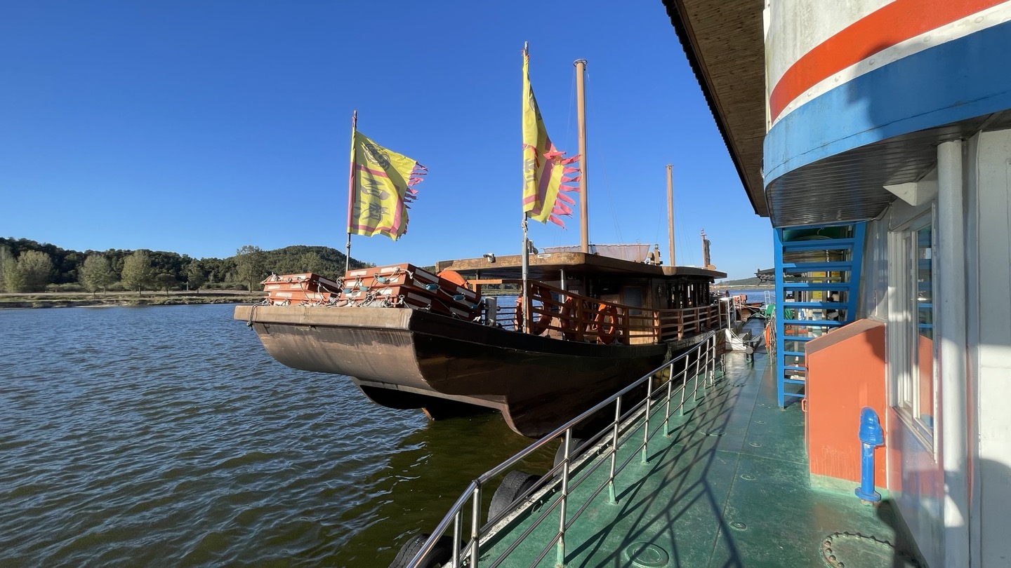 왕복코스 매표를 하고 10분 정도 기다리니 황포돛배 형태의 유람선이 도착했습니다.